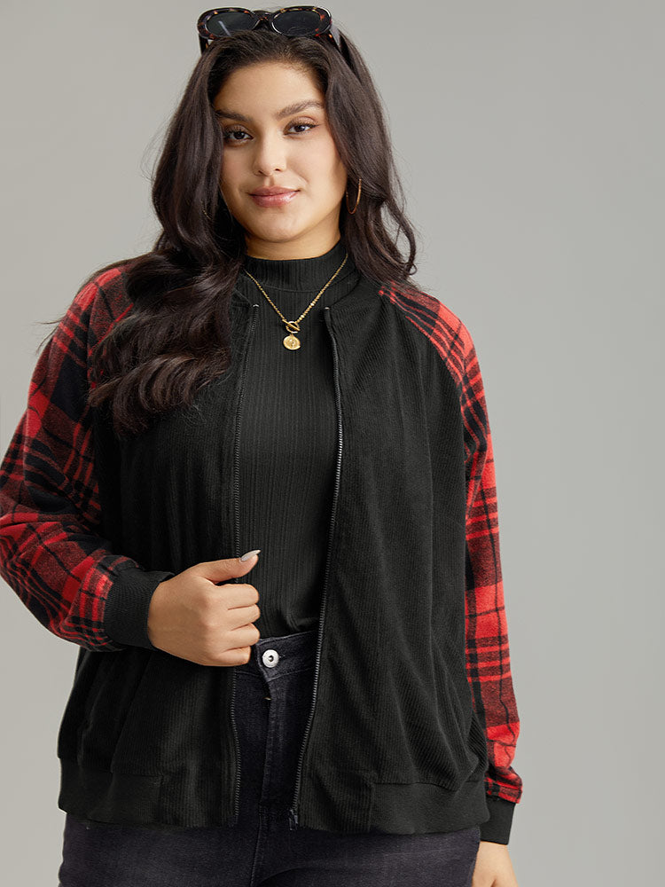 Plaid Patchwork Pocket Zipper Fly Jacket