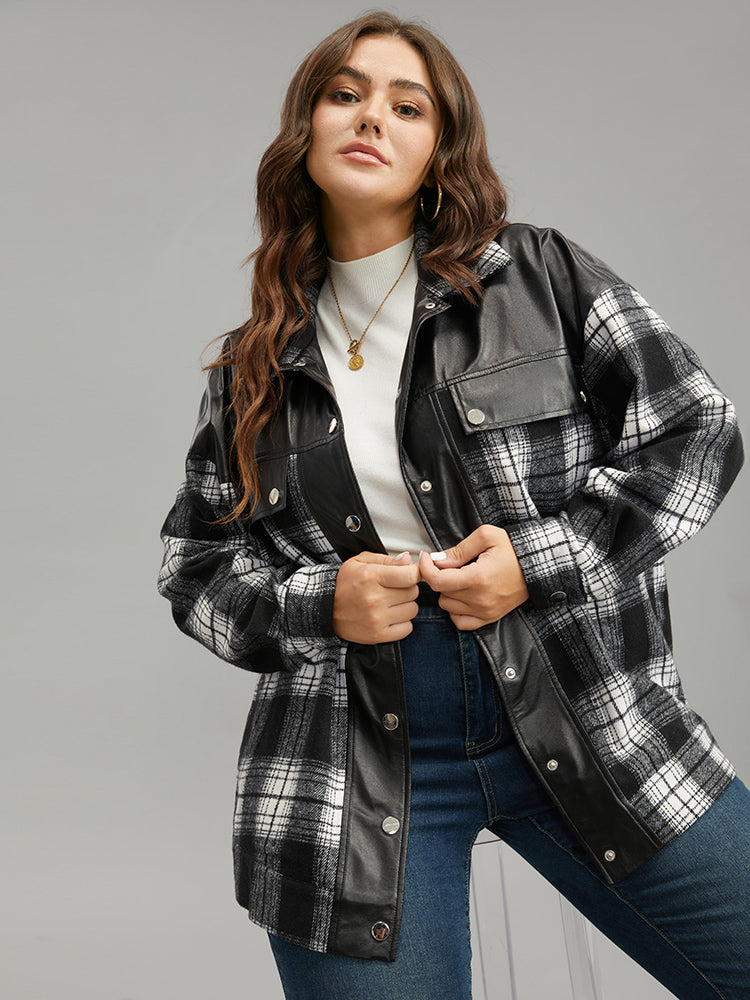 Plaid Patchwork Patched Pocket Jacket