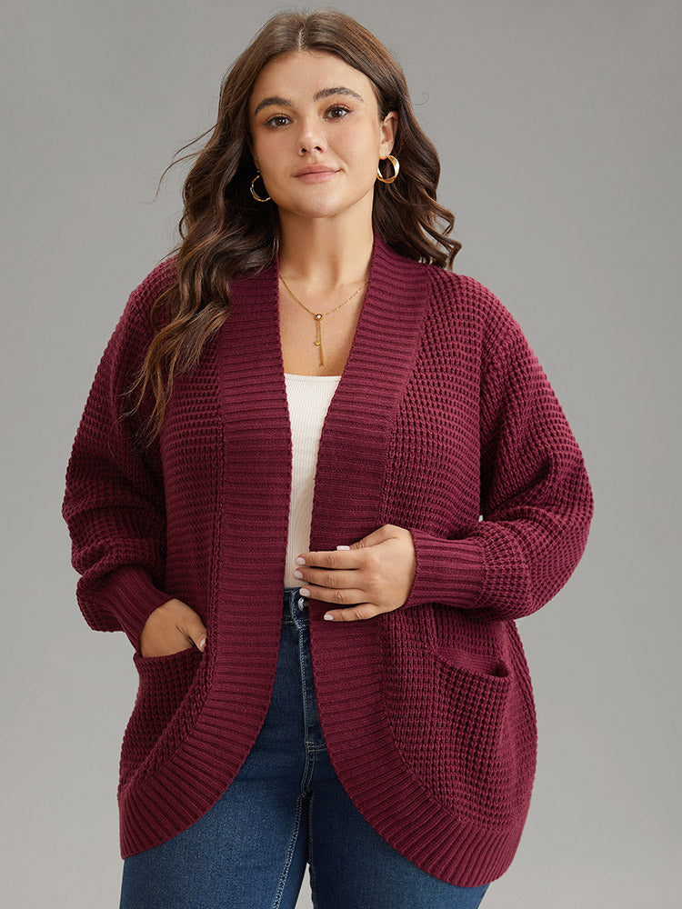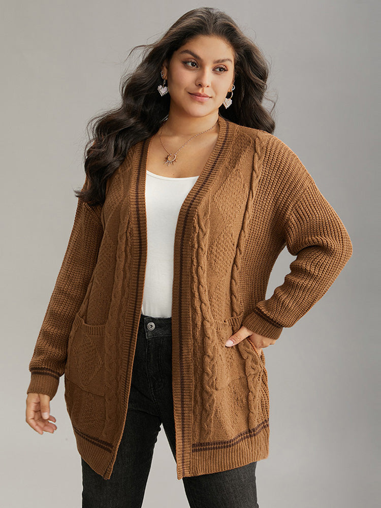 Plain Cable Knit Pocket Open Front Cardigan