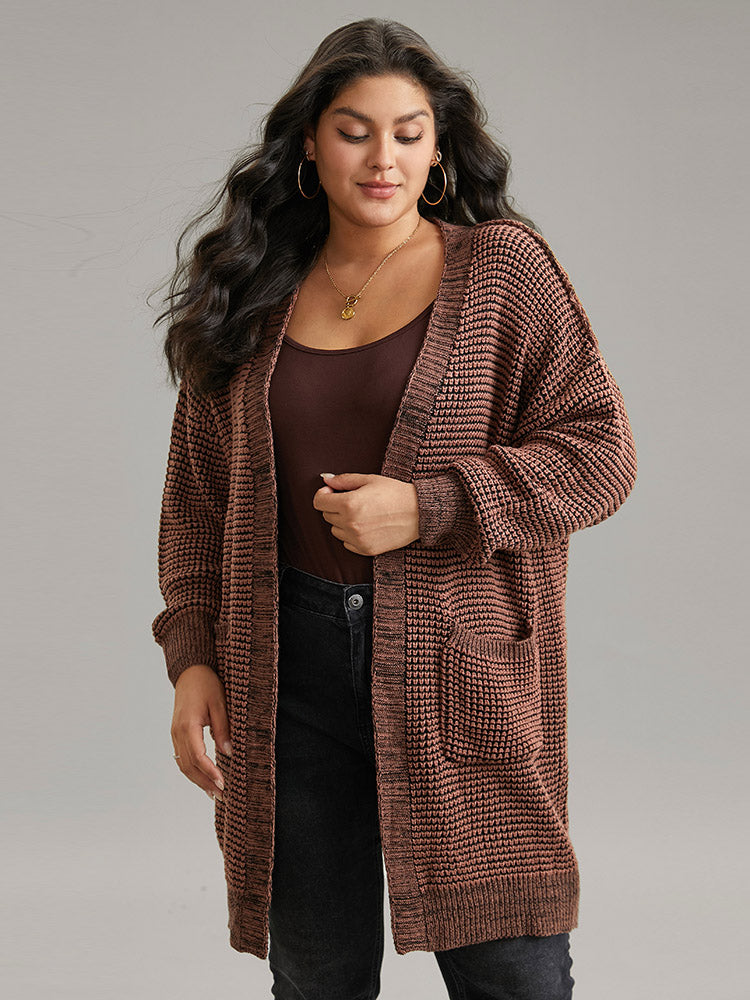 Checkered Heather Textured Open-Front Cardigan