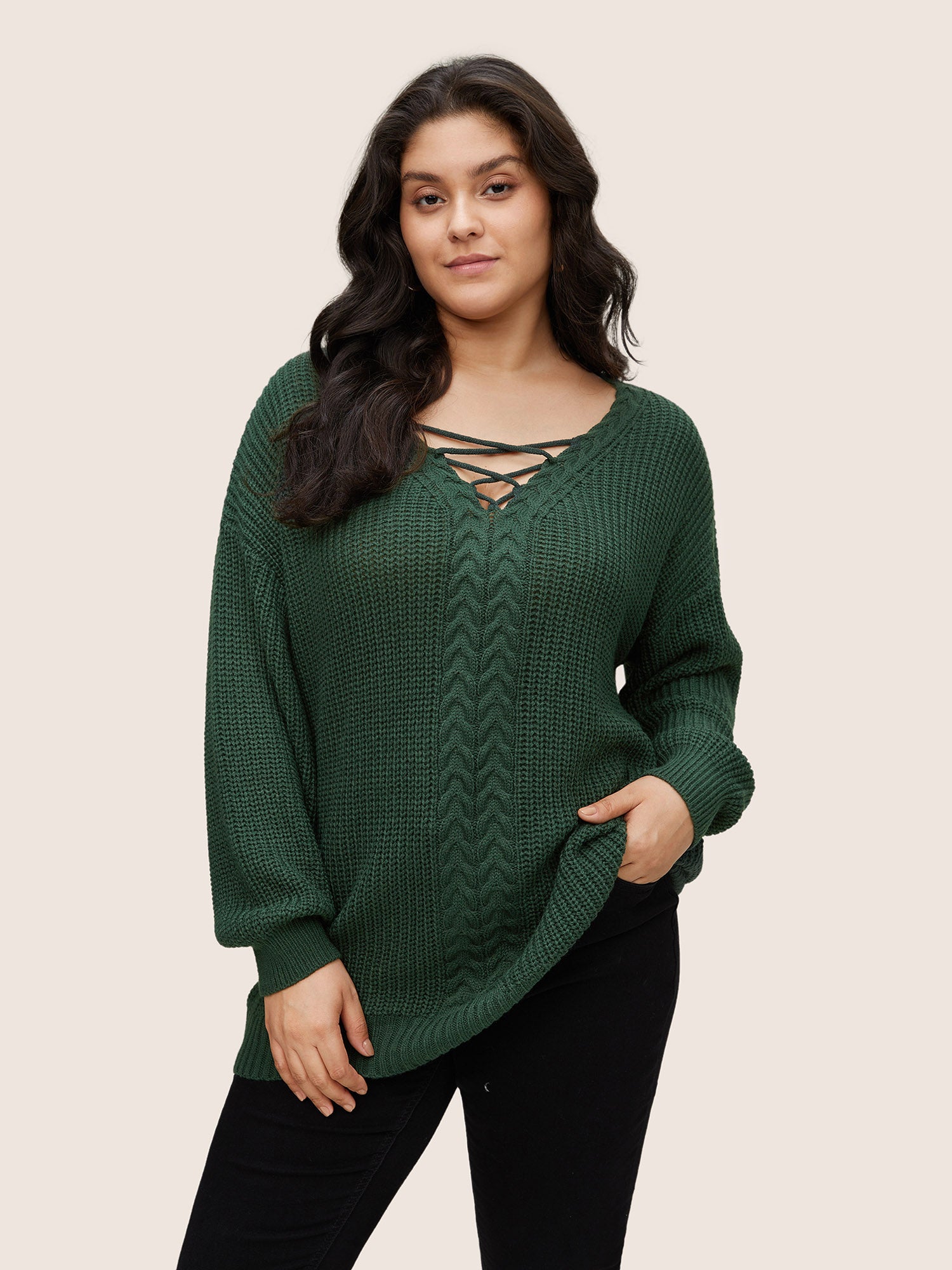 Plain Cable Knit Crisscross Pullover