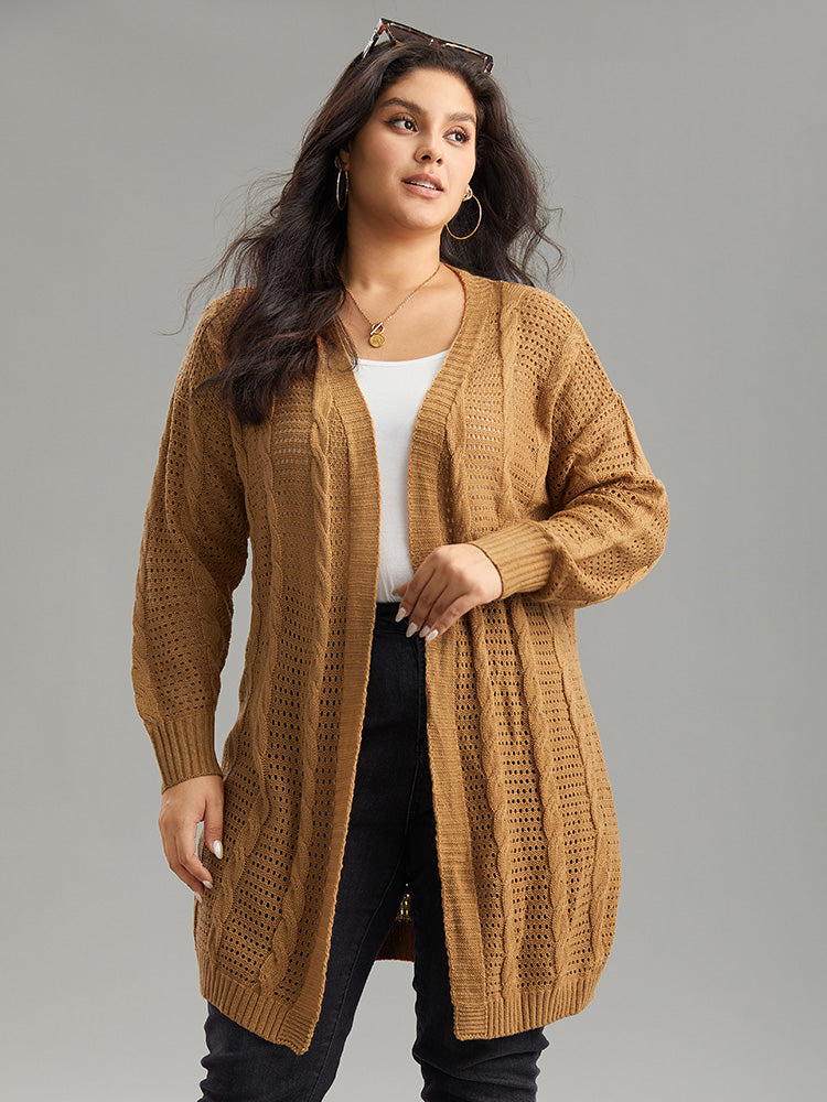Plain Cable Knit Luxe Open Front Cardigan