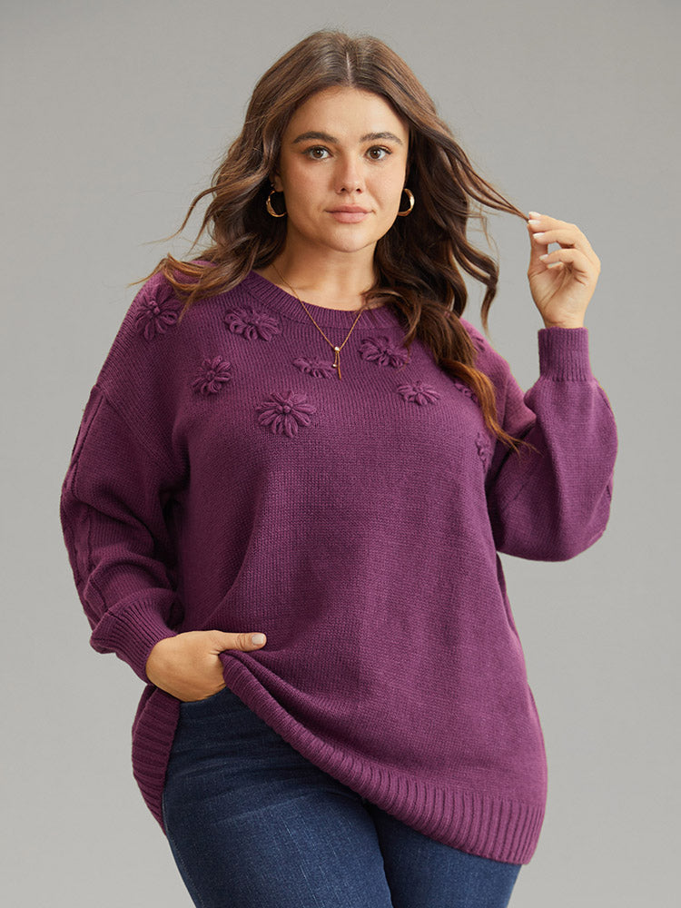 Plisse Floral Solid Elastic Cuffs Pullover