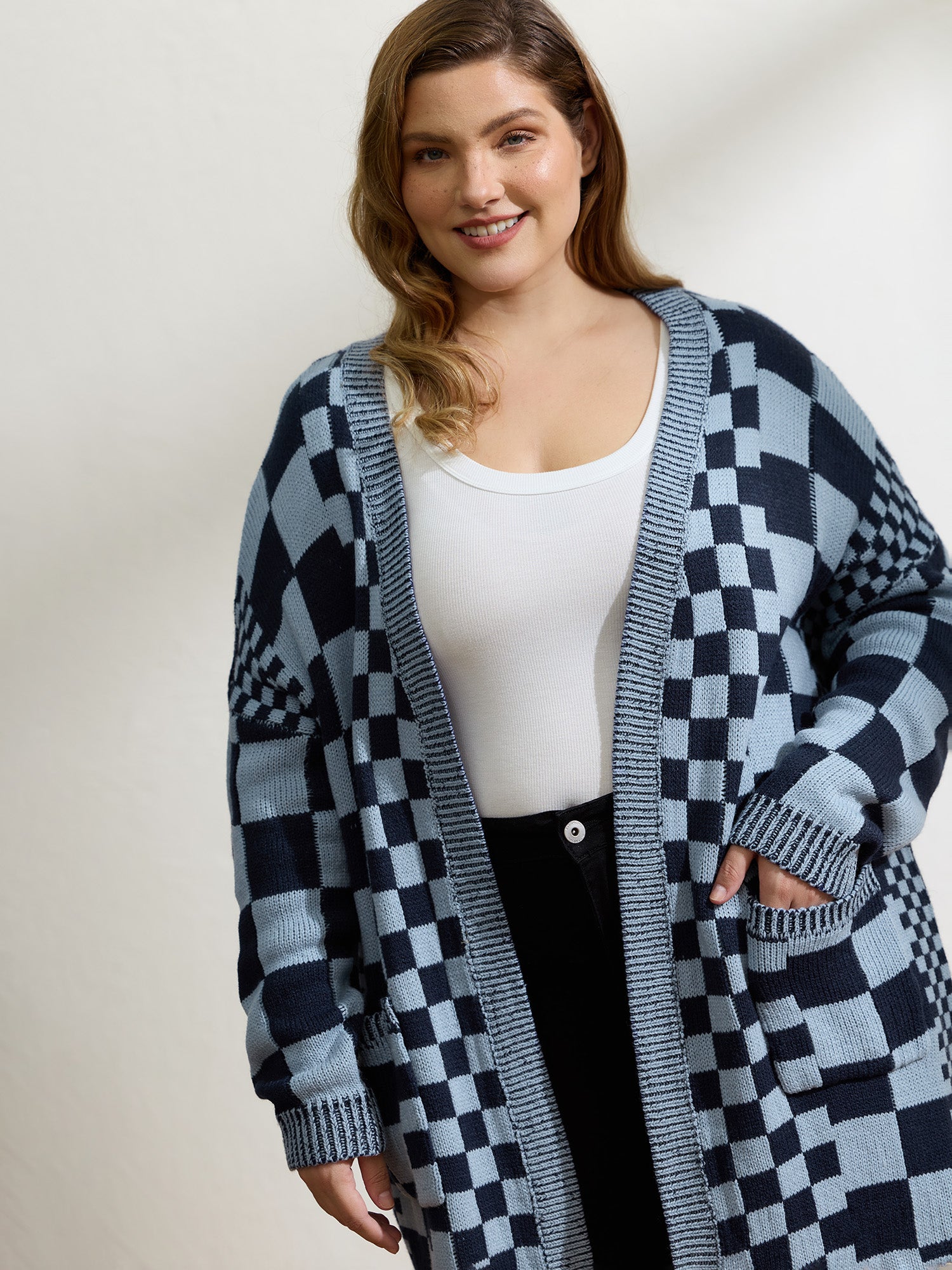 Checkered Relaxed-Fit Drop Shoulder Cardigan