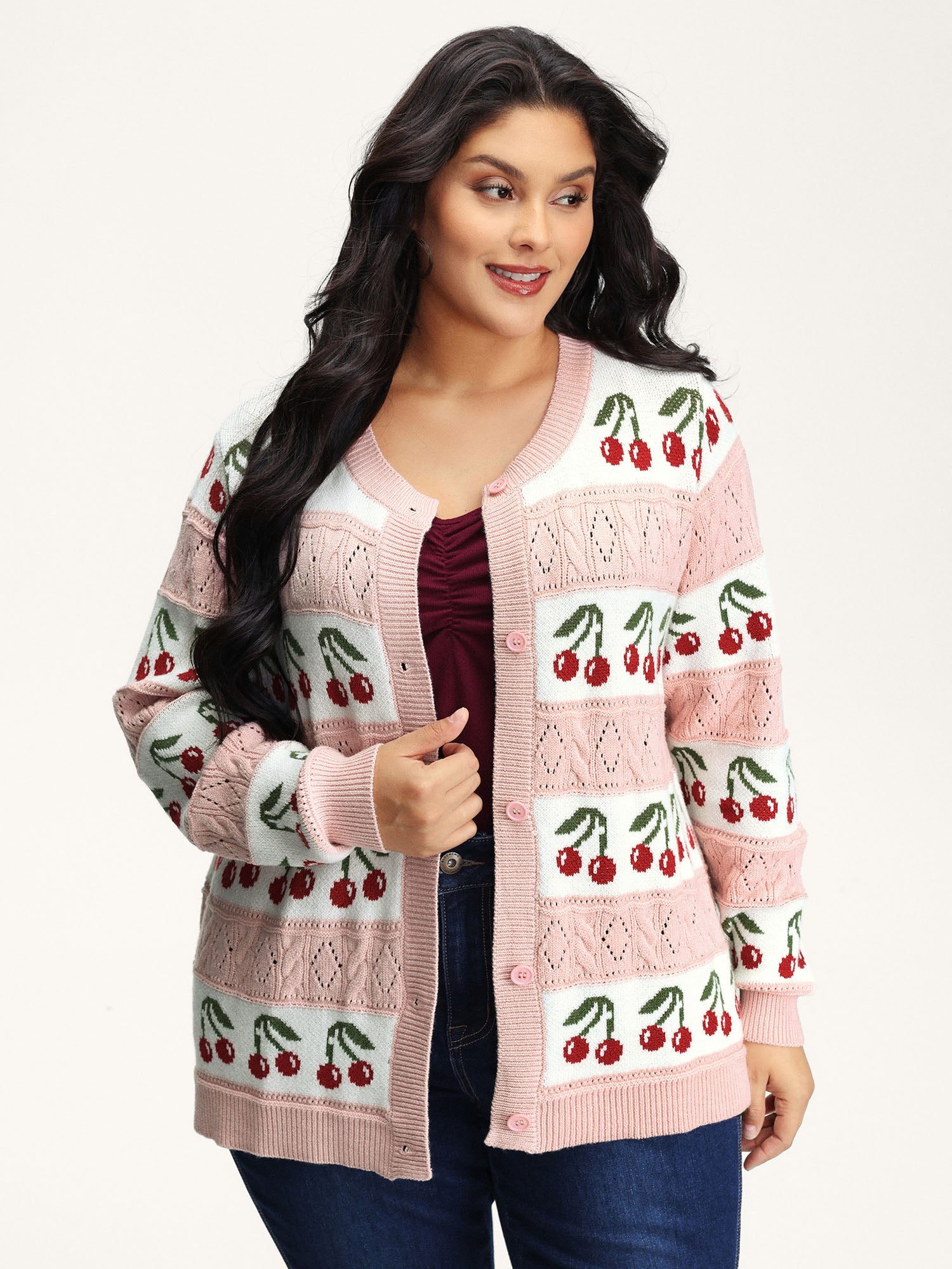 Cherry Jacquard Print Button Knit Cardigan