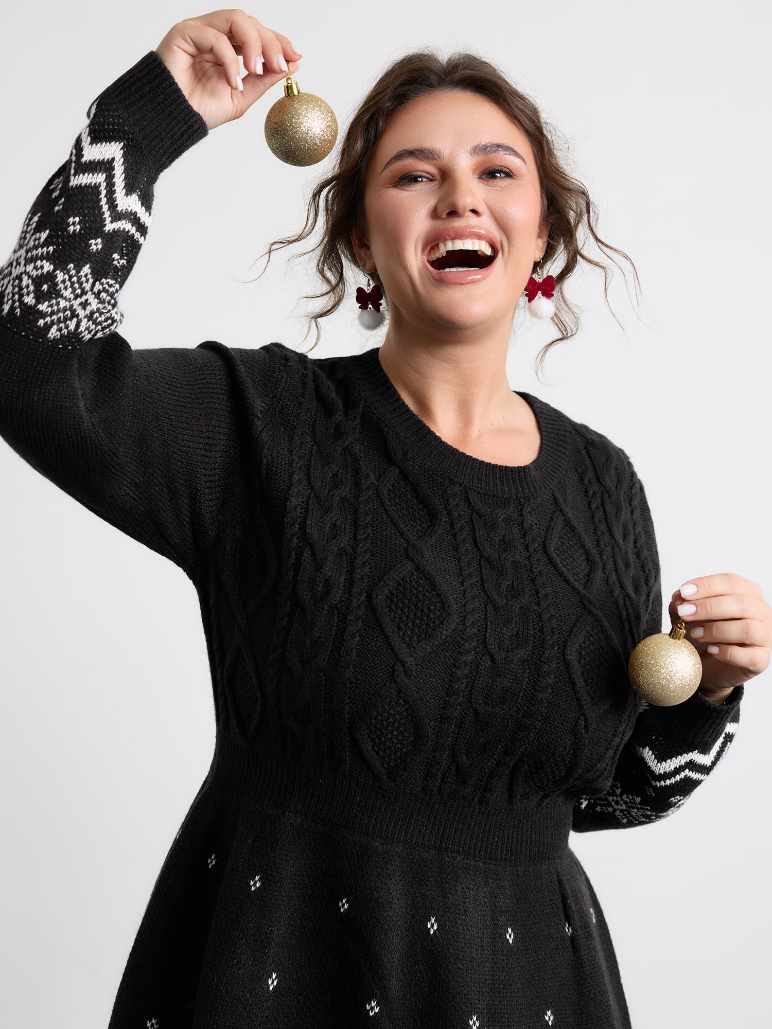 Christmas Textured Pattern Midi Sweater Dress