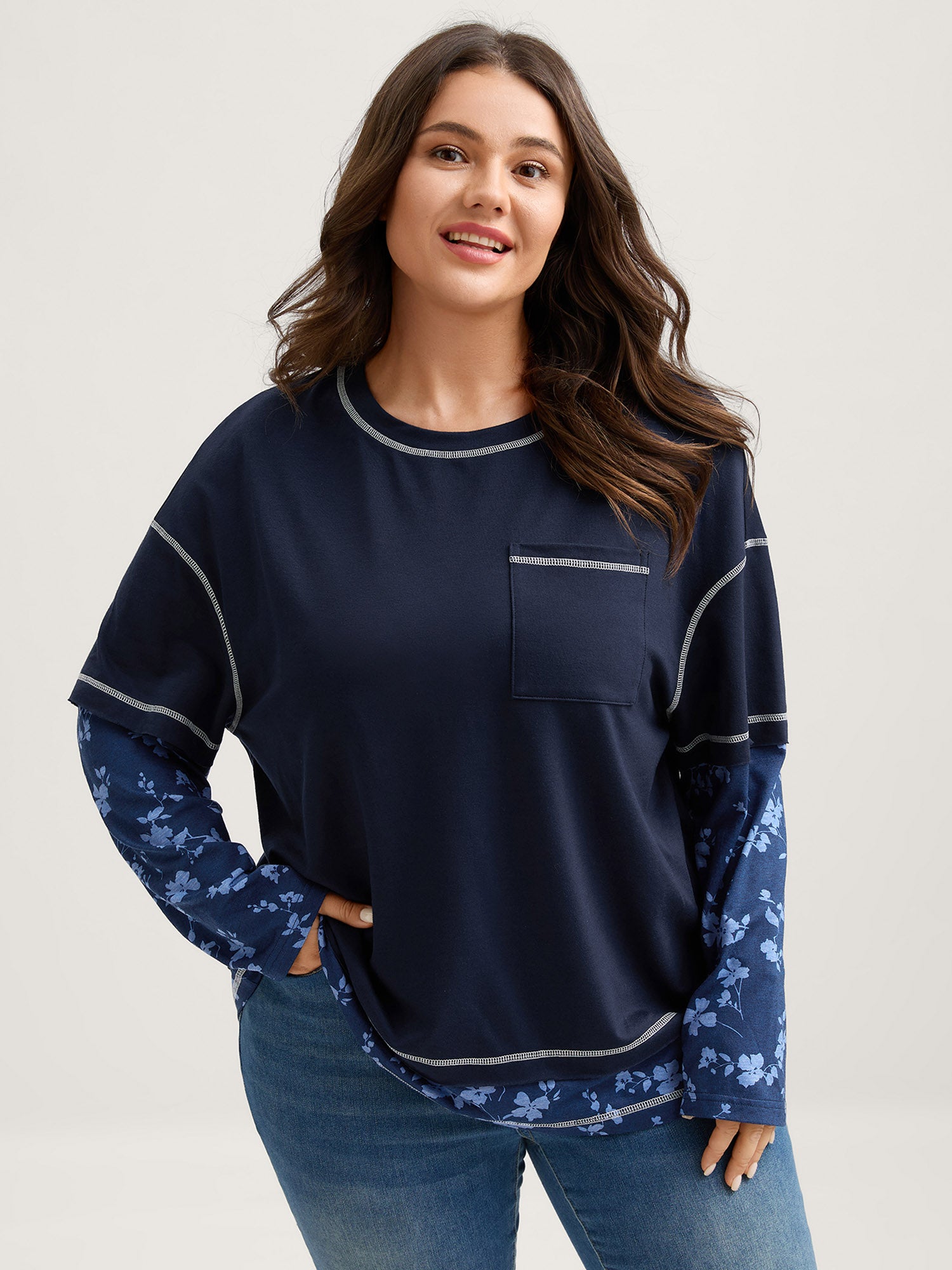 Patchwork Sleeve Floral Spliced Sweatshirt