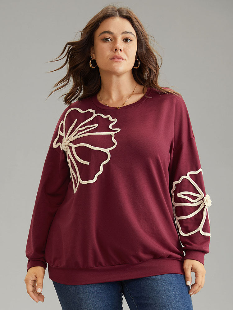 3D Floral Applique Drop Shoulder Sweatshirt