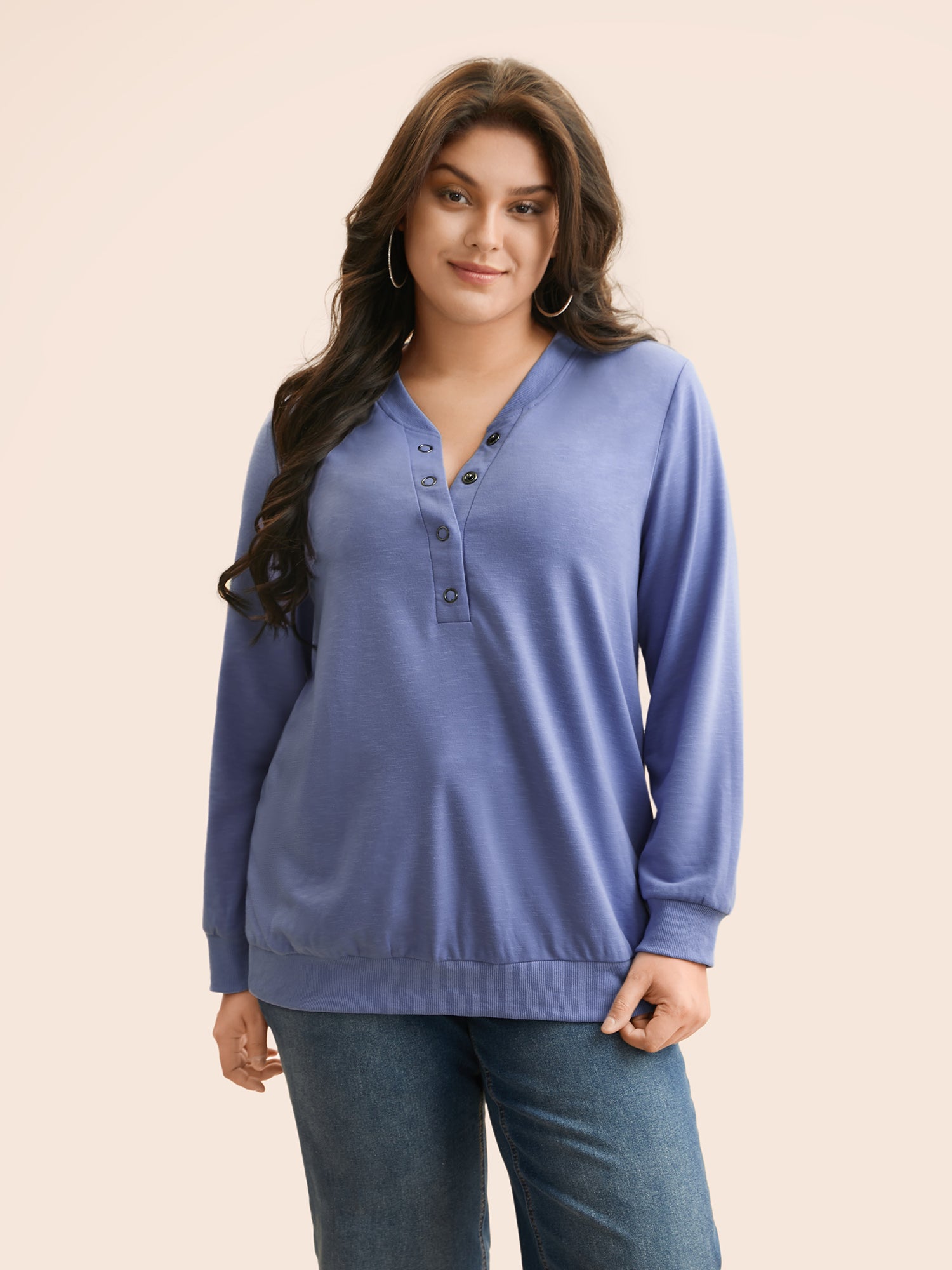 Plain Plicated Detail Button Detail Sweatshirt