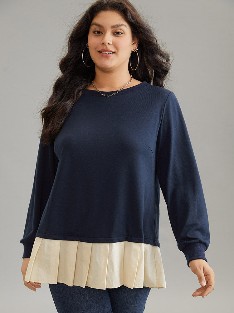 2-In-1 Two Tone Pleated Hem Sweatshirt