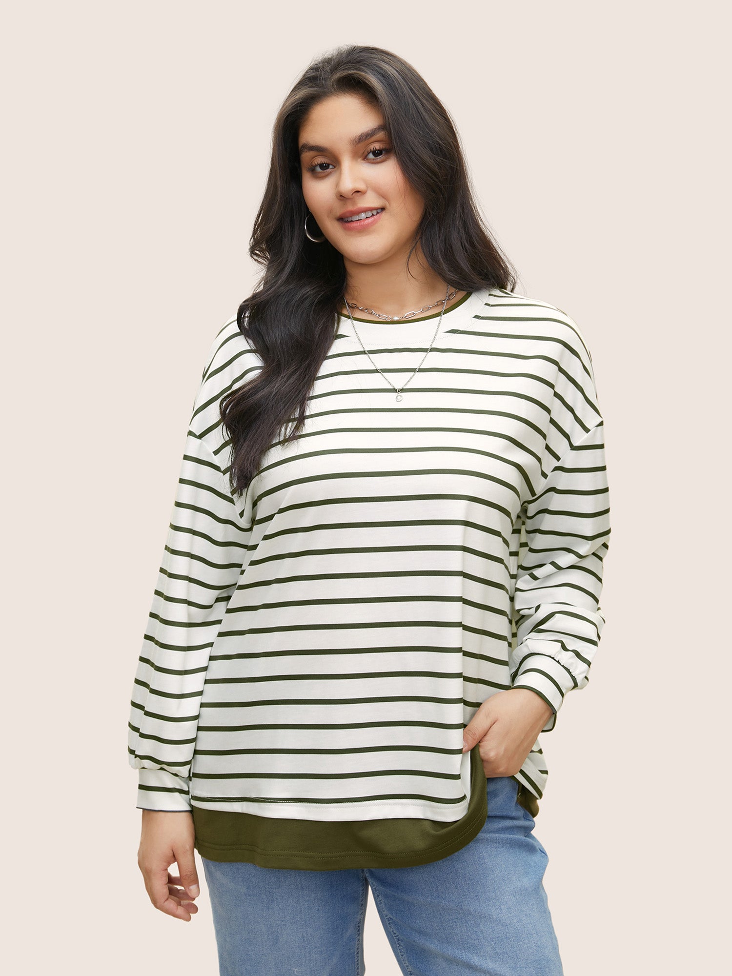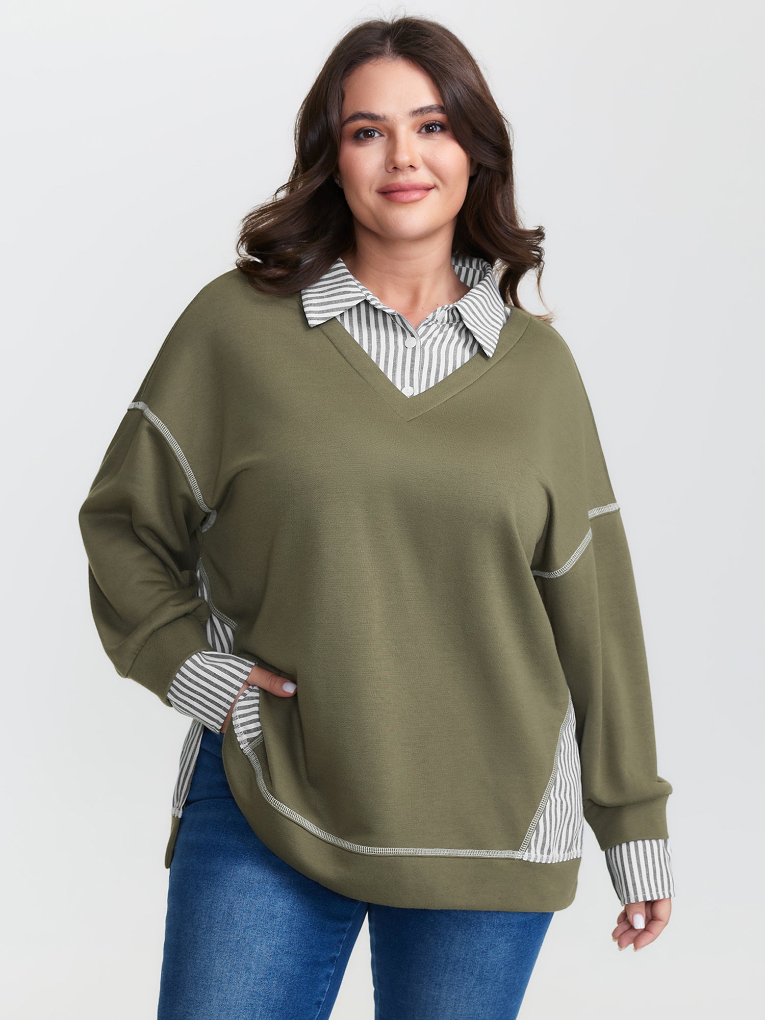 2-In-1 Stripe Drop Shoulder Sweatshirt
