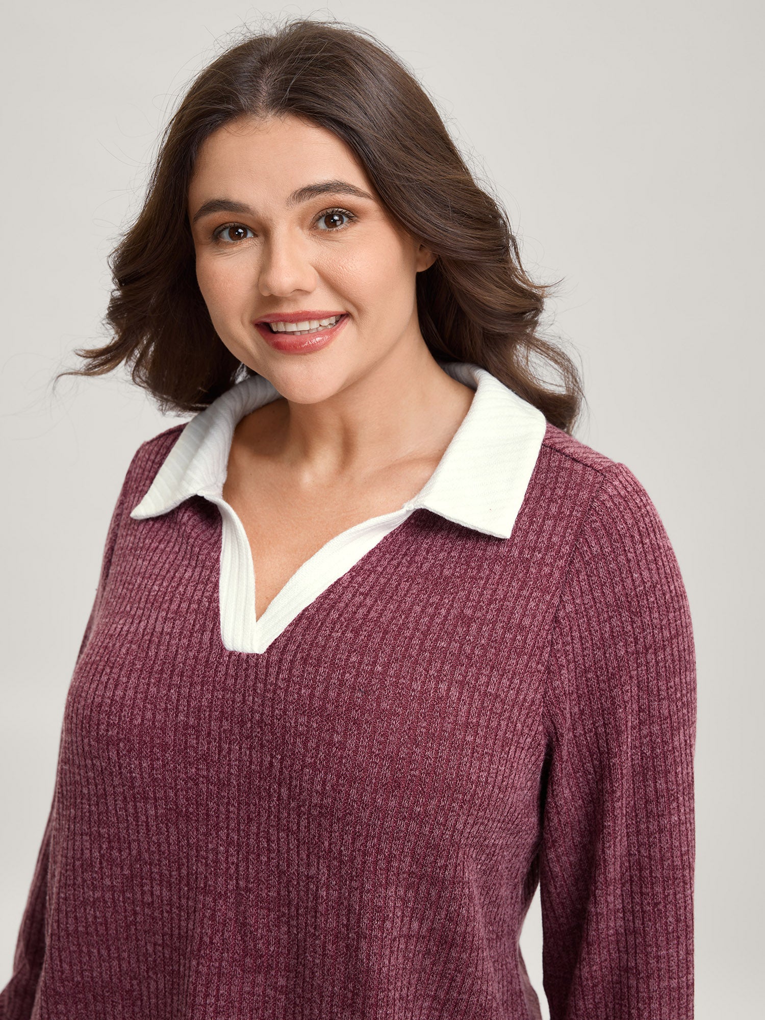 Shop 2-in-1 Collar Color Contrast Sweatshirt now and redefine your style with confidence at Sweetccc. Tailored for mid and plus-size women. This trendy Tops Women. sizes 10-30. Color:Burgundy;Neckline:Polo;Sleeve Type:Regular Sleeve;Prints:Non;Details:Contrast. Texture;Pocket:No-pocket;Belt:No-belt;Closure Type:Non