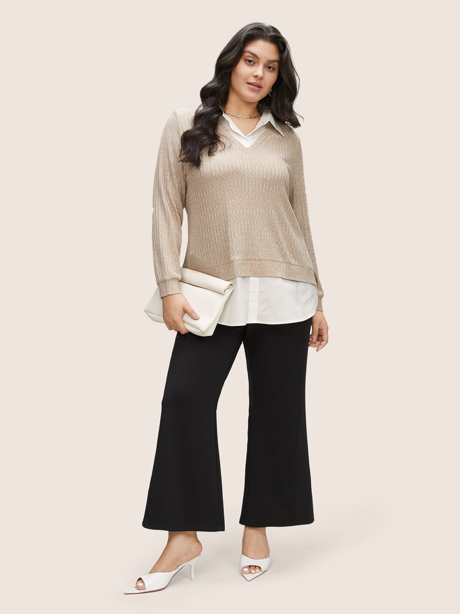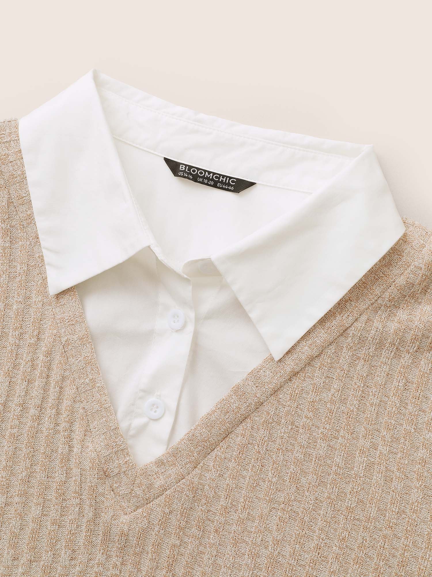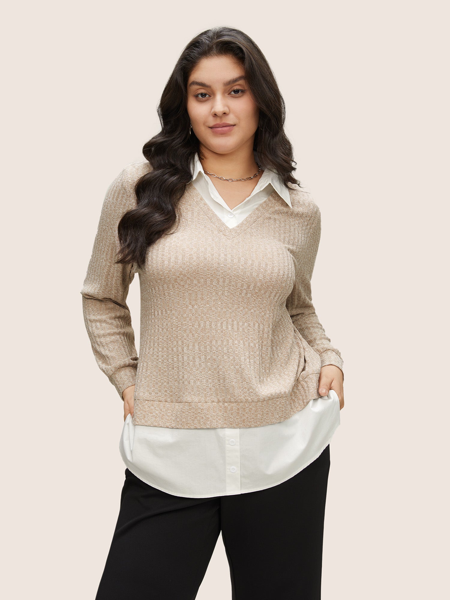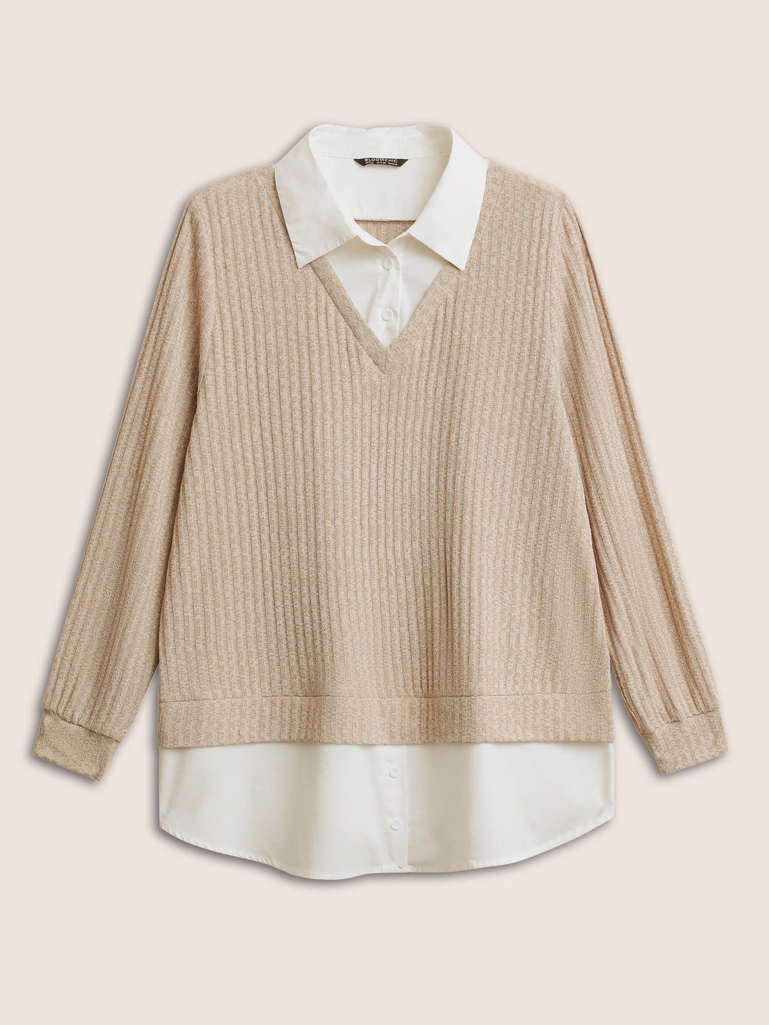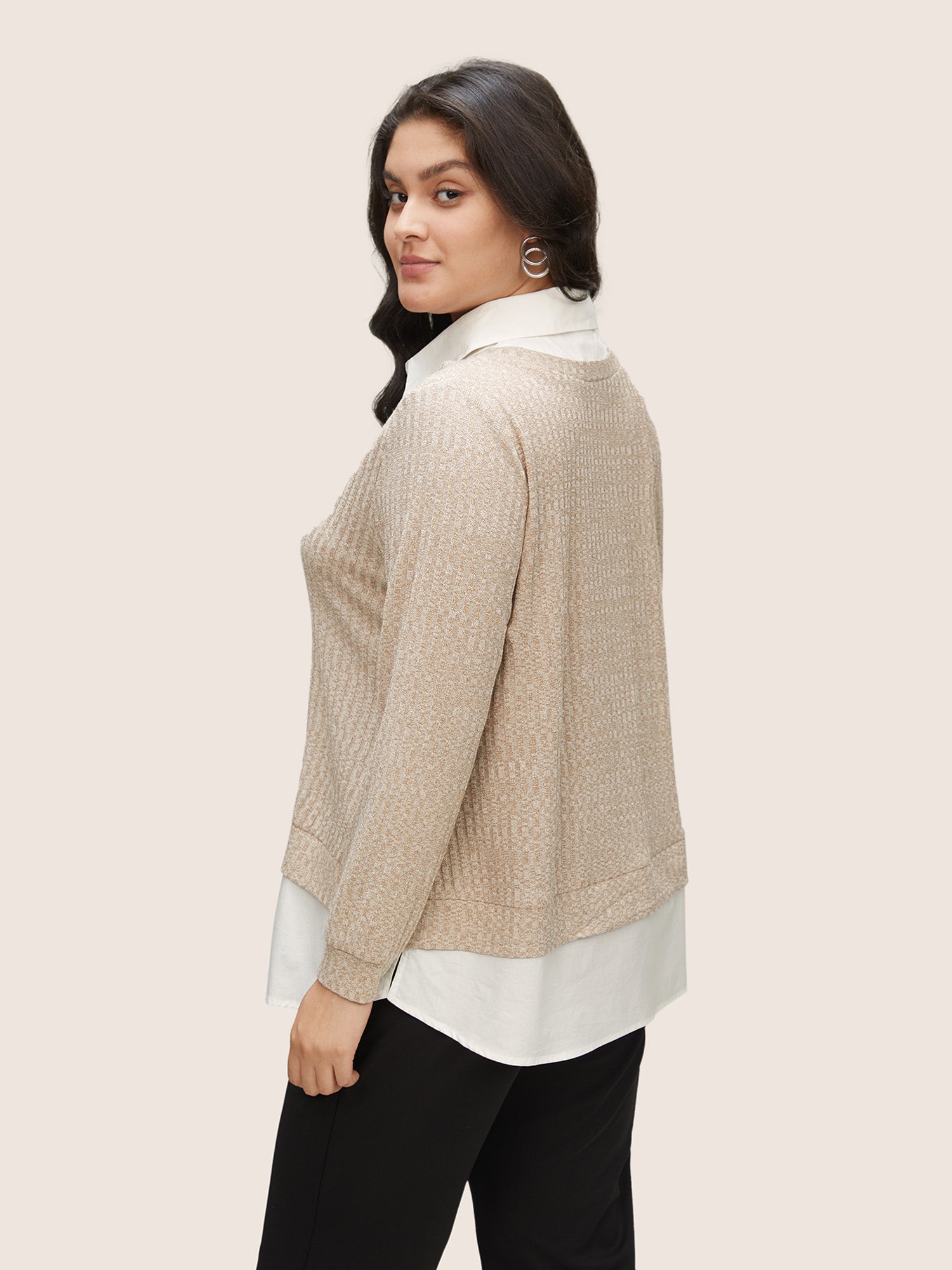 Shop 2-In-1 Patchwork Shirt Collar Sweatshirt now and redefine your style with confidence at Sweetccc. Tailored for mid and plus-size women. This trendy Tops Women. sizes 10-30. Season:Spring;Color:Tan.Indigo;Neckline:Shirt collar;Sleeve Type:Regular Sleeve;Pattern Type:Plain;Details:Button. Patchwork. Contrast;Pocket:No-pocket;Belt:No-belt