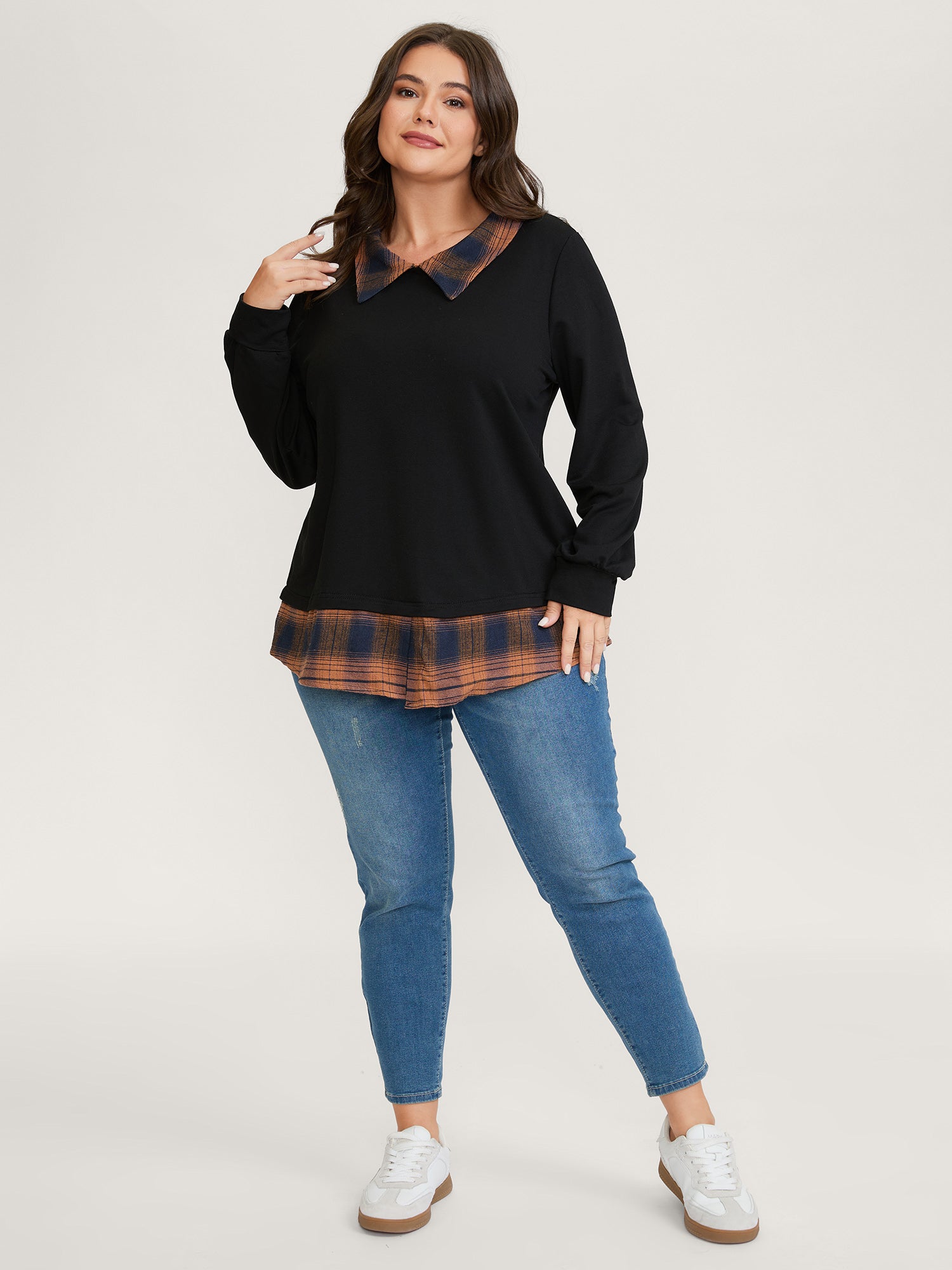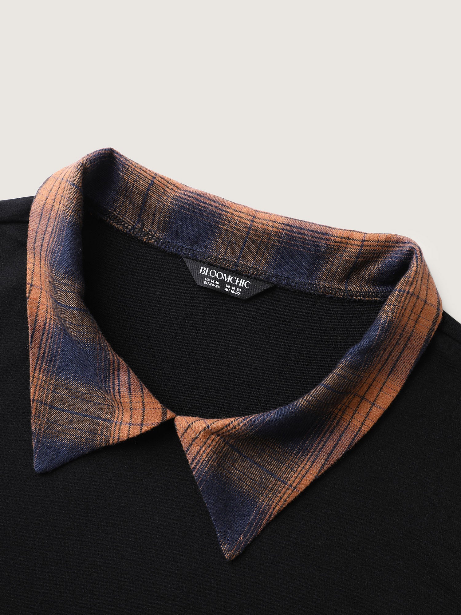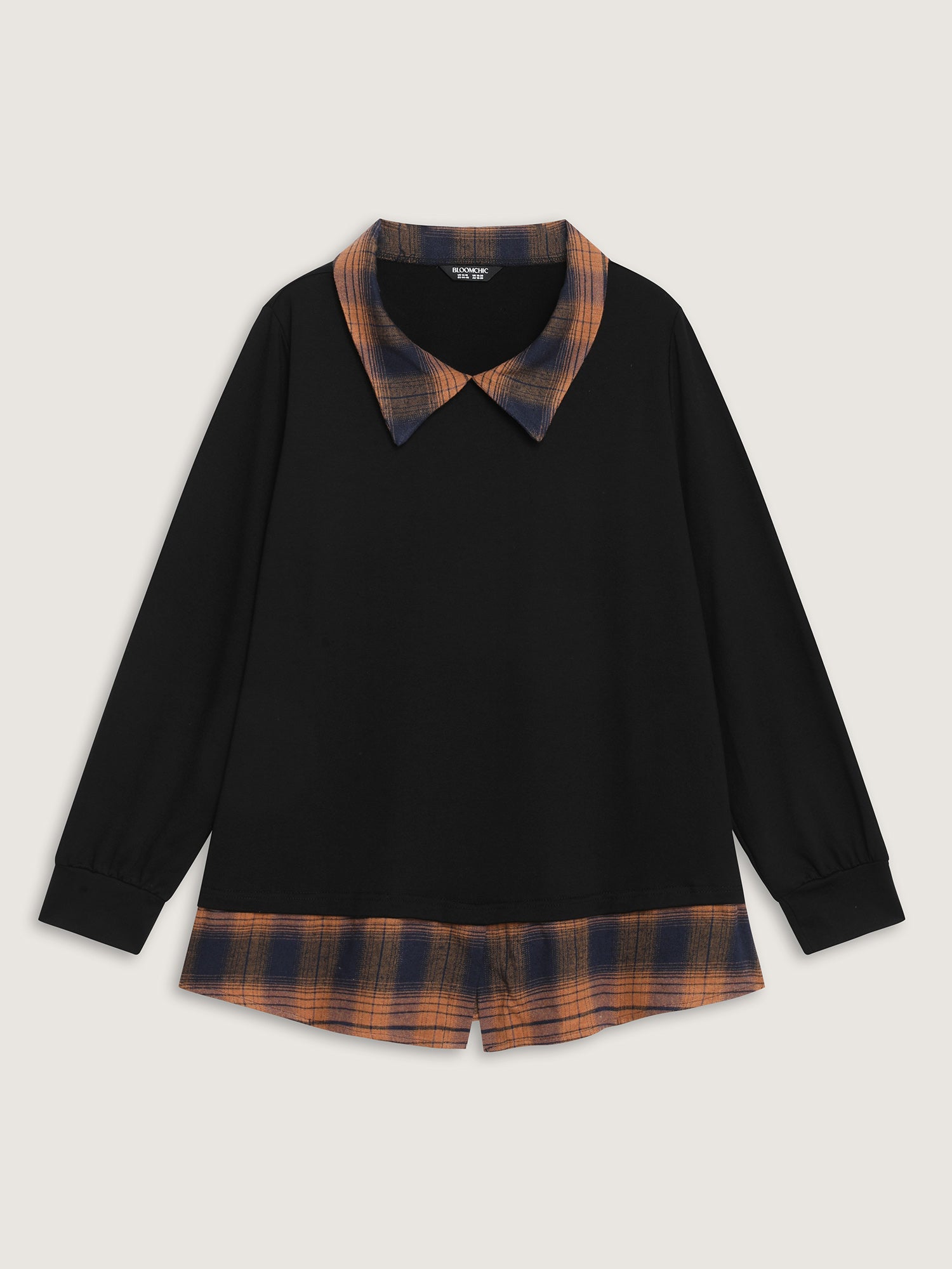 Shop 2-in-1 Stretchy Checkered Print Sweatshirt now and redefine your style with confidence at Sweetccc. Tailored for mid and plus-size women. This trendy Tops Women. sizes 10-30. Color:Black;Neckline:Shirt collar;Sleeve Type:Regular Sleeve;Prints:Non;Details:Contrast;Pocket:No-pocket;Belt:No-belt;Closure Type:Non