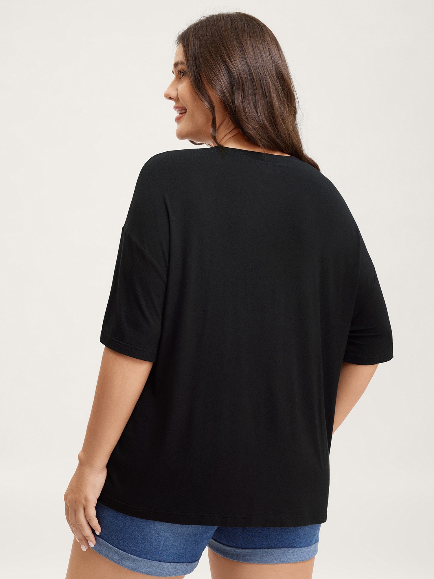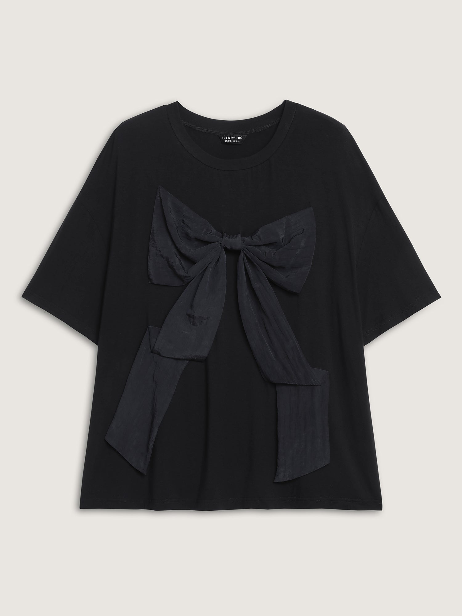 Shop 3D Bow-Tie Front Supersoft T-Shirt now and redefine your style with confidence at Sweetccc. Tailored for mid and plus-size women. This trendy Tops Women. sizes 10-30. Color:Black;Prints:Non;Neckline:Round Neck;Sleeve Type:Drop shoulder sleeve;Pocket:No-pocket