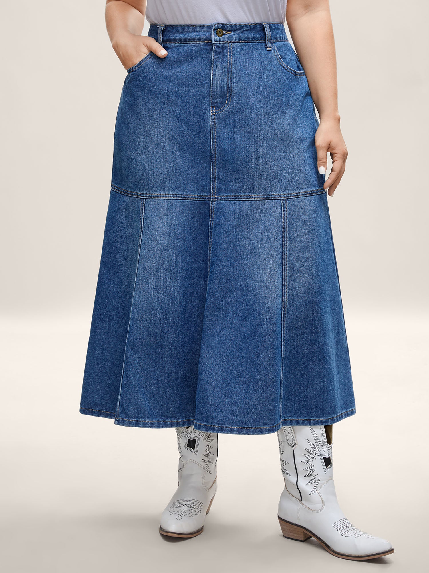 Shop A-Line Seamed Maxi Denim Skirt now and redefine your style with confidence at Sweetccc. Tailored for mid and plus-size women. This trendy Denim Women. sizes 10-30. Color:Midblue;Prints:Non;Pocket:Slanted pocket;Belt:No-belt;Closure Type:Zipper;Wash:Medium Wash