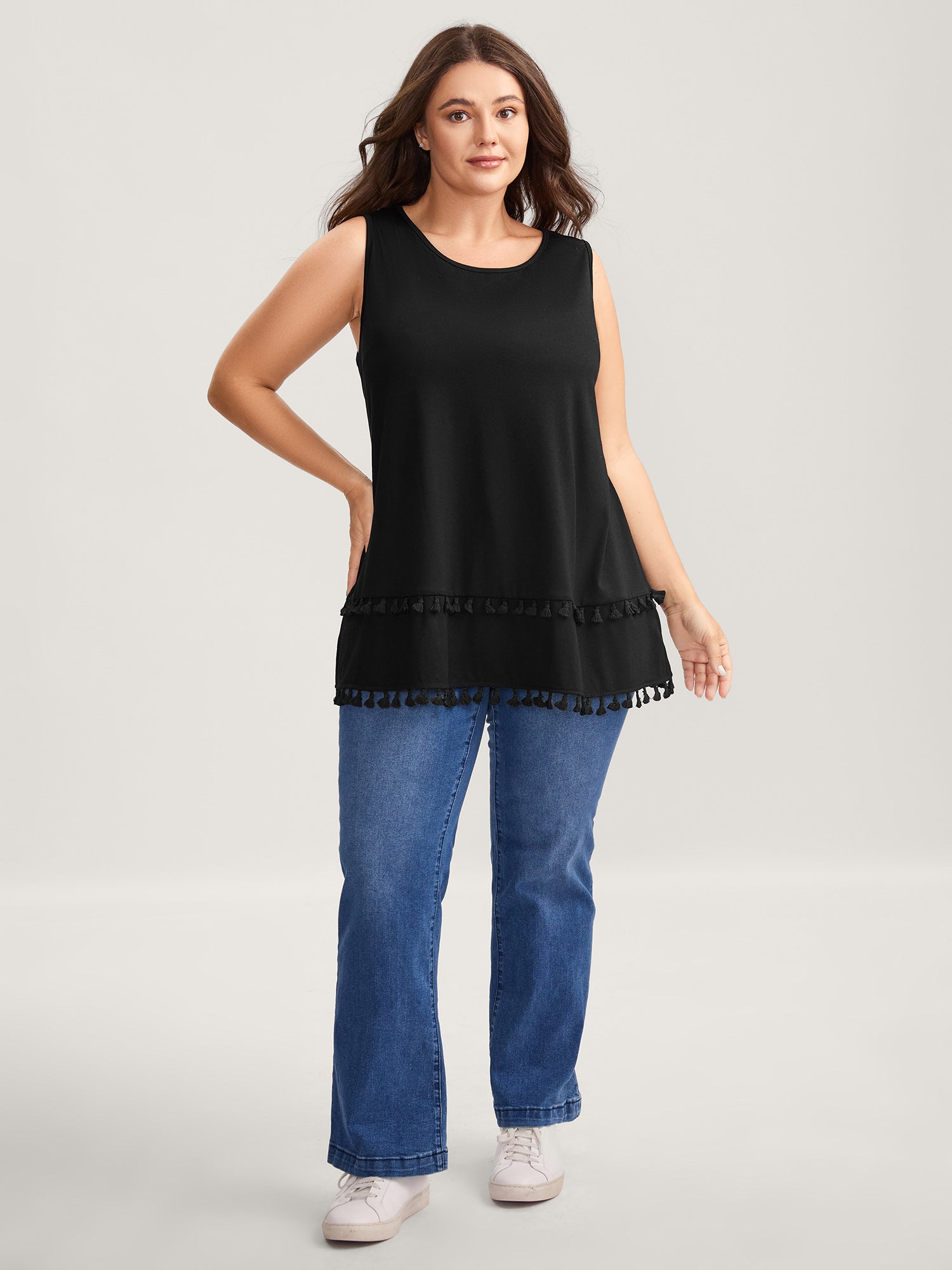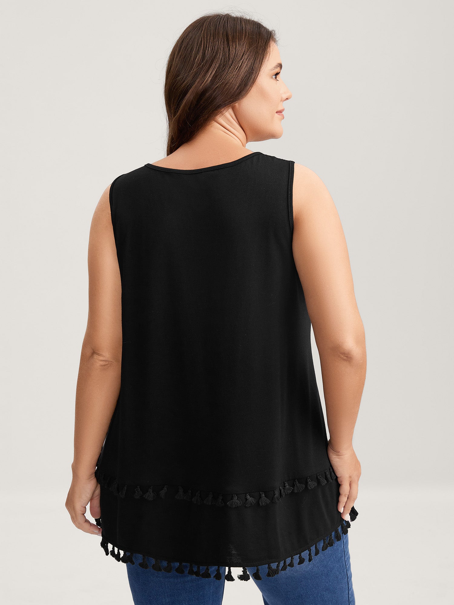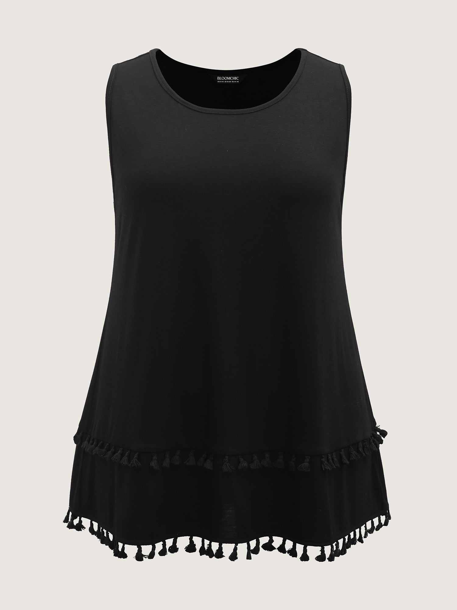 Shop A-Line Tassel Hem Plain Tank Top now and redefine your style with confidence at Sweetccc. Tailored for mid and plus-size women. This trendy Tops Women. sizes 10-30. Color:Black;Prints:Non;Neckline:Round Neck;Sleeve Type:Sleeveless;Details:Tassels;Pocket:No-pocket