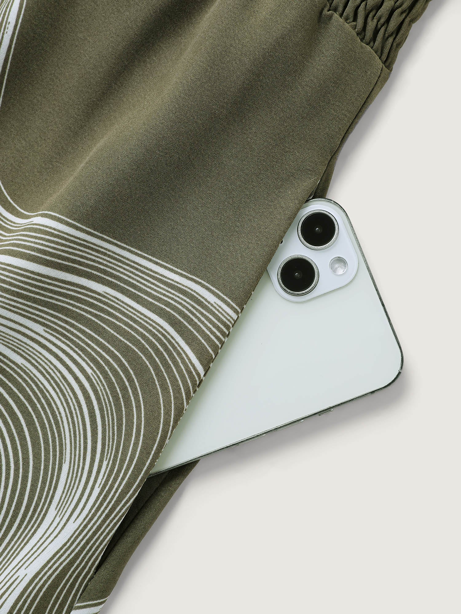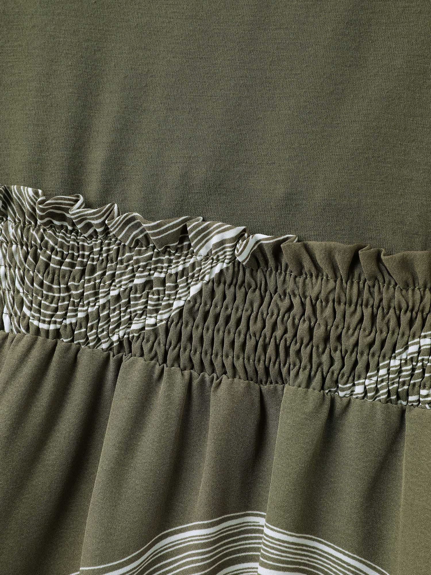 Abstract Print Contrast Shirred Waist Midi Dress