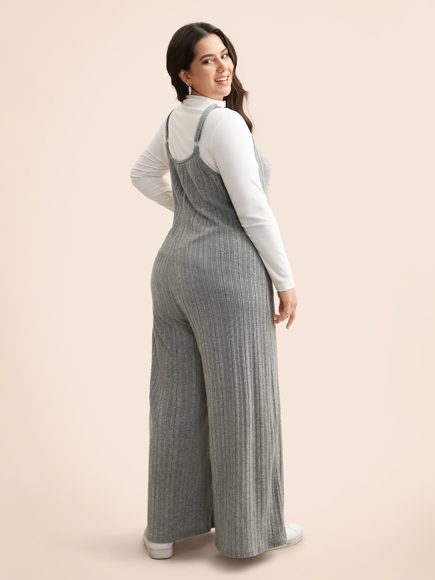 Shop Airy Cozy Cami Wide-Leg Jumpsuit now and redefine your style with confidence at Sweetccc. Tailored for mid and plus-size women. This trendy Jumpsuits Women. sizes 10-30. Color:LightGray;Style:Casual Everyday;Neckline:V-neck;Prints:Non;Details:Texture;Pocket:Patch pocket;Belt:No-belt;Closure Type:Non