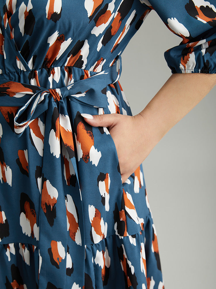 Shop Allover Print Ruffle Layered Hem Wrap Belted Dress now and redefine your style with confidence at Sweetccc. Tailored for mid and plus-size women. This trendy Dress. sizes 10-30. You can never go wrong with Sweetccc Dresses. Season:Winter;Color:Cerulean;Style:Office;Neckline:Overlap Collar;Sleeve Type:Regular Sleeve;Pattern Type:Geometric. Graphic. Colorblock;Details:Pocket. Button. Elastic Waist. Printed. Belted. Wrap. Elastic cuffs;Pocket:It is perfectly sized to carry a phone.;Belt:Belt