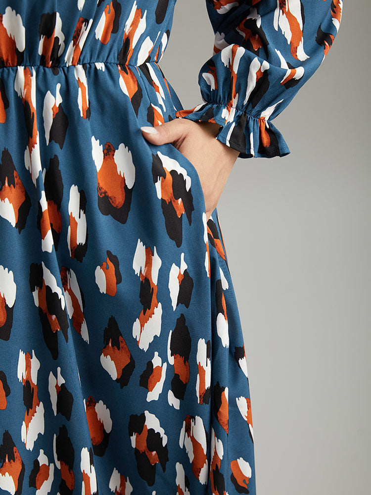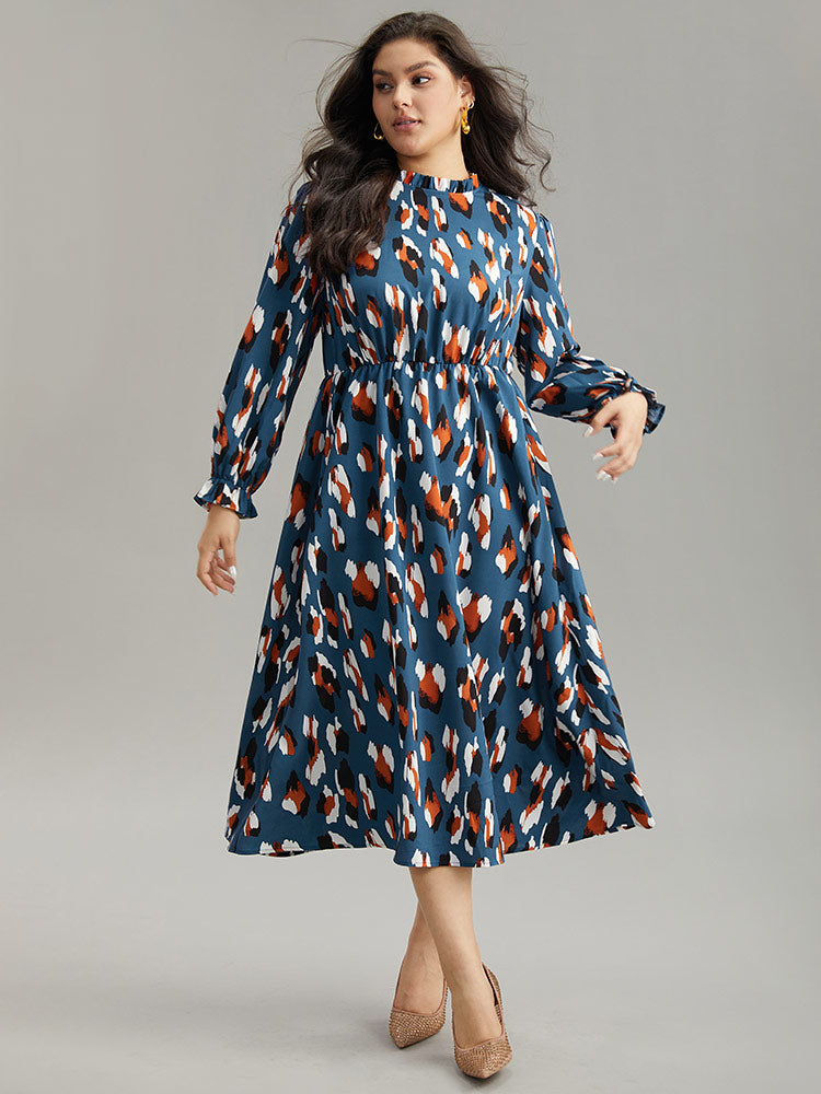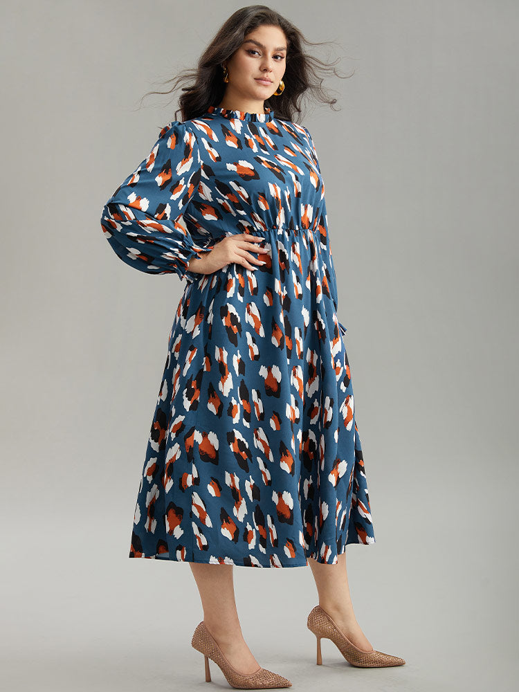 Shop Allover Print Stand Collar Pocket Ruffles Dress now and redefine your style with confidence at Sweetccc. Tailored for mid and plus-size women. This trendy Dress. sizes 10-30. You can never go wrong with Sweetccc Dresses. Season:Winter;Color:Aegean;Style:Office;Neckline:Stand-up collar;Sleeve Type:Lantern Sleeve;Pattern Type:Colorblock. Graphic. Geometric;Details:Ruffles. Pocket. Elastic Waist. Pleated. Printed;Pocket:It is perfectly sized to carry a phone.;Belt:No-belt