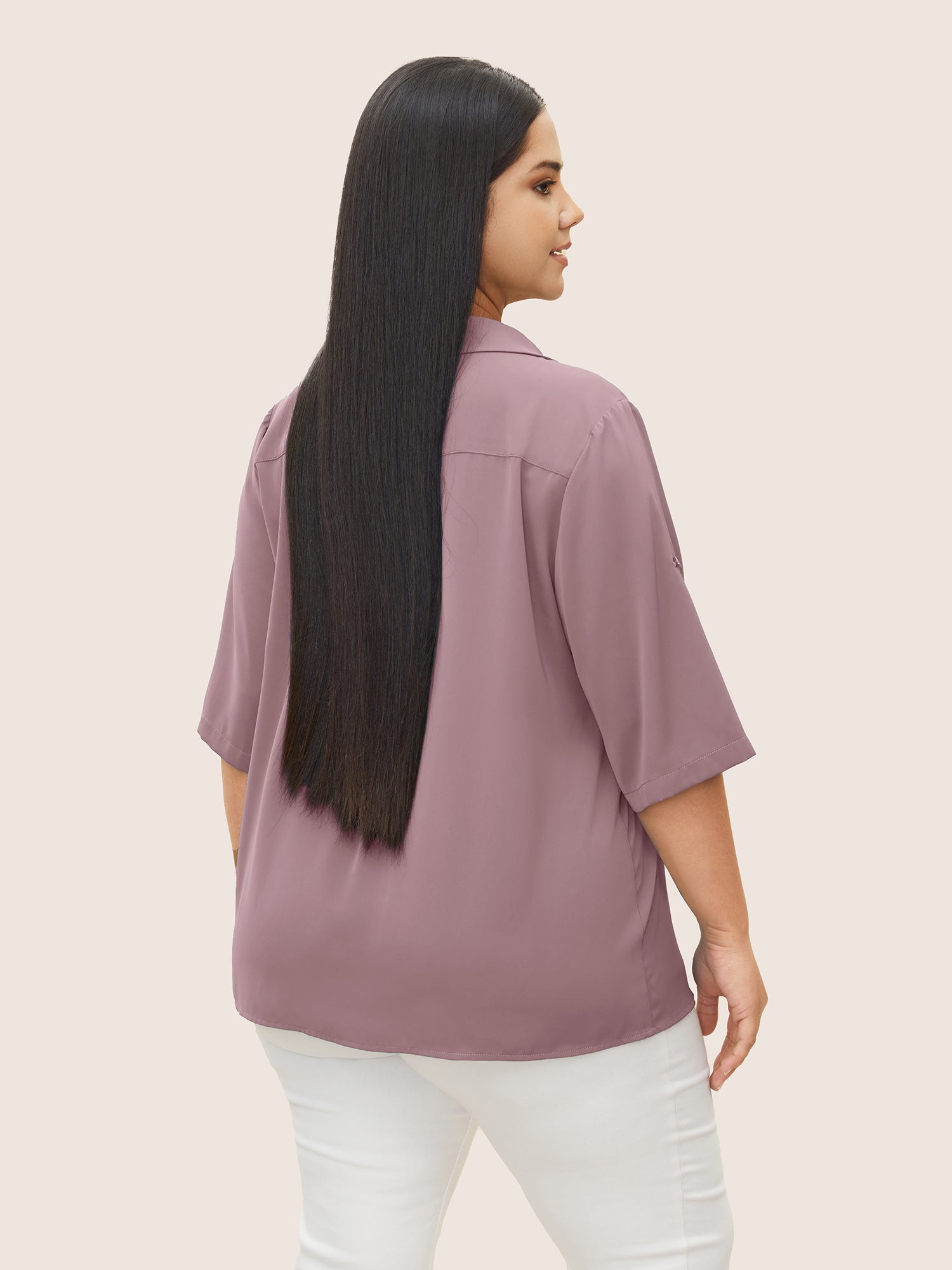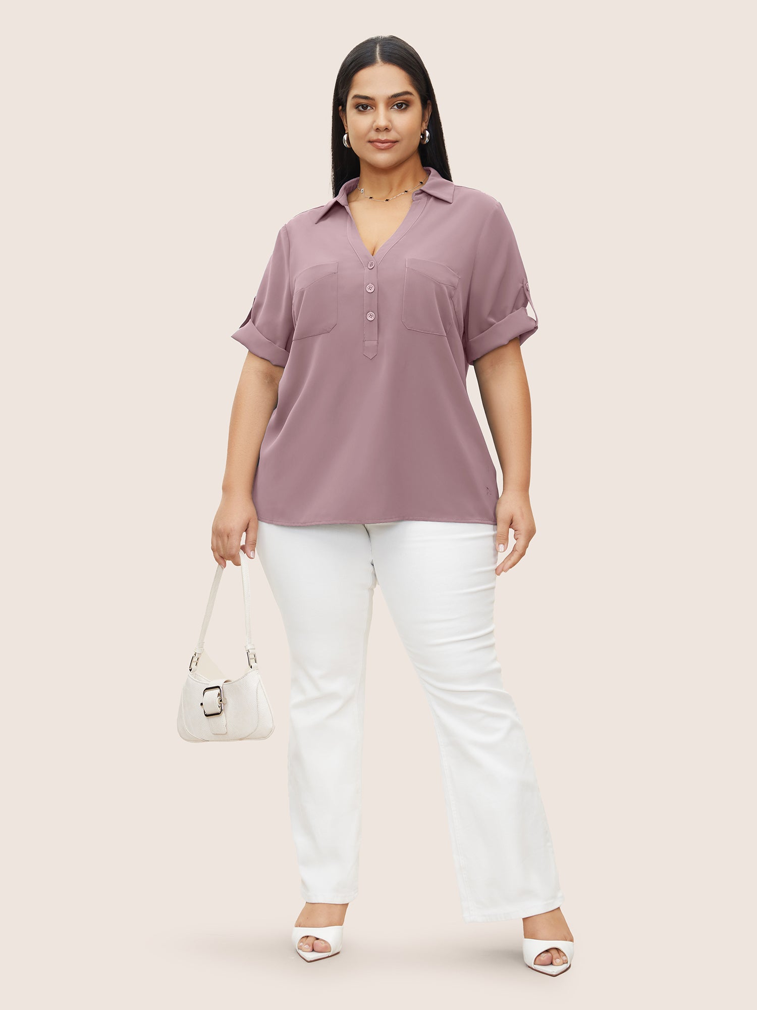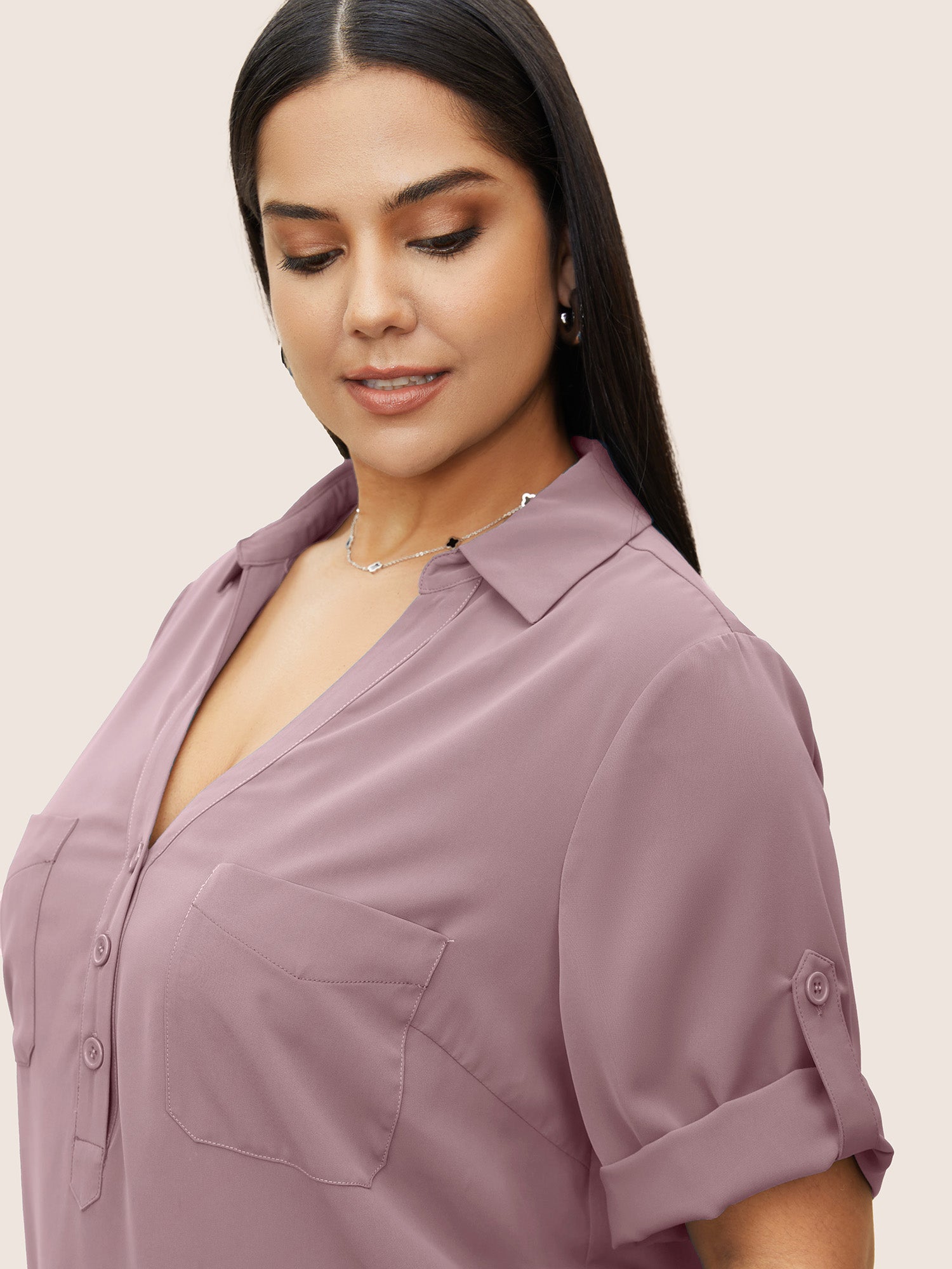 Shop Shirt Collar Patched Pocket Tab Sleeve Blouse now and redefine your style with confidence at Sweetccc. Tailored for mid and plus-size women. This trendy Tops Women. sizes 10-30. Color:Mauve.Stone;Style:Work From Home Work;Prints:Non;Neckline:Shirt collar;Sleeve Type:Button cuff sleeve;Details:Button;Pocket:Patch pocket