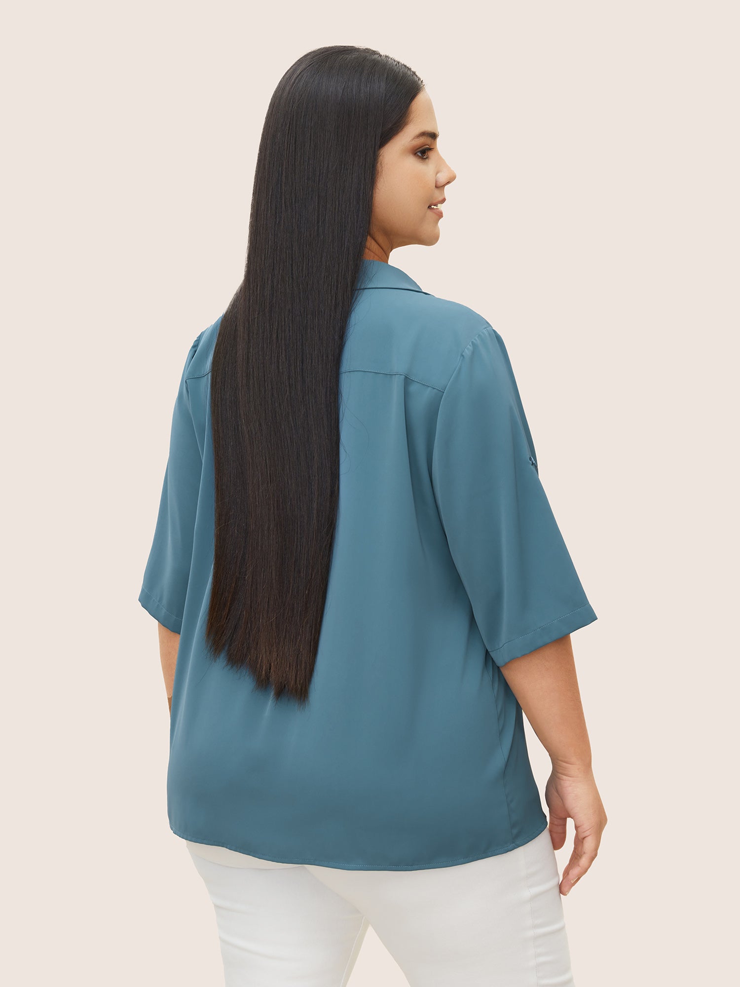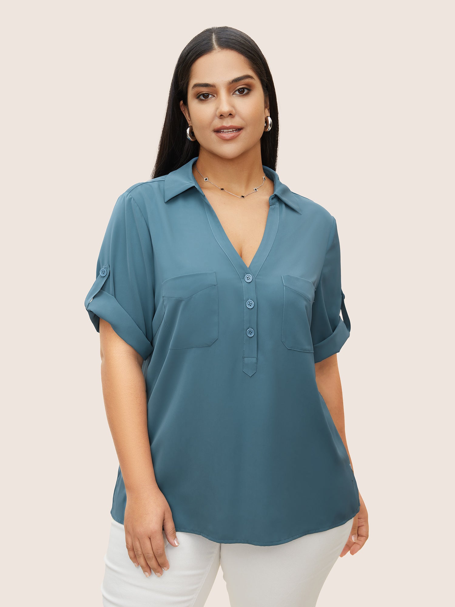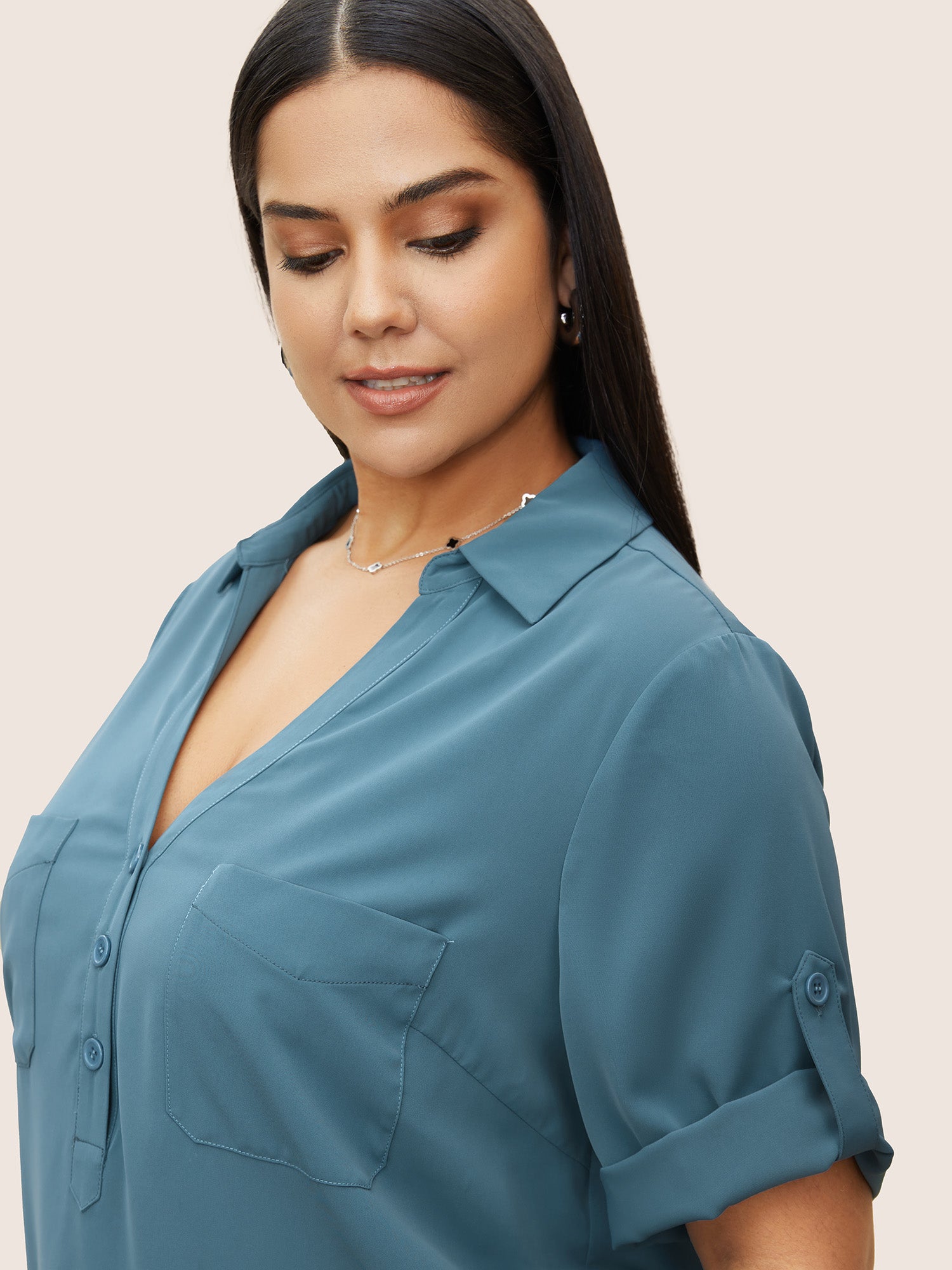 Shop Shirt Collar Patched Pocket Tab Sleeve Blouse now and redefine your style with confidence at Sweetccc. Tailored for mid and plus-size women. This trendy Tops Women. sizes 10-30. Color:Mauve.Stone;Style:Work From Home Work;Prints:Non;Neckline:Shirt collar;Sleeve Type:Button cuff sleeve;Details:Button;Pocket:Patch pocket