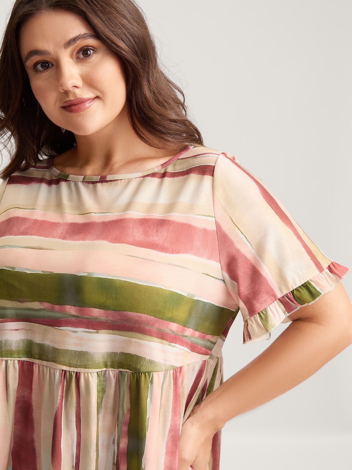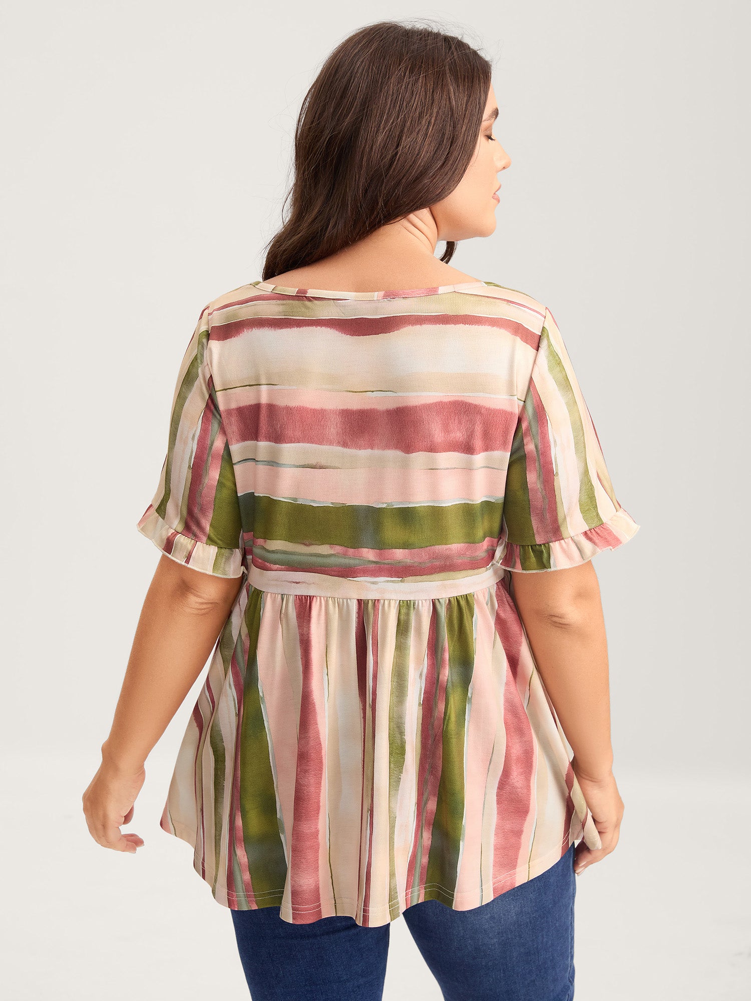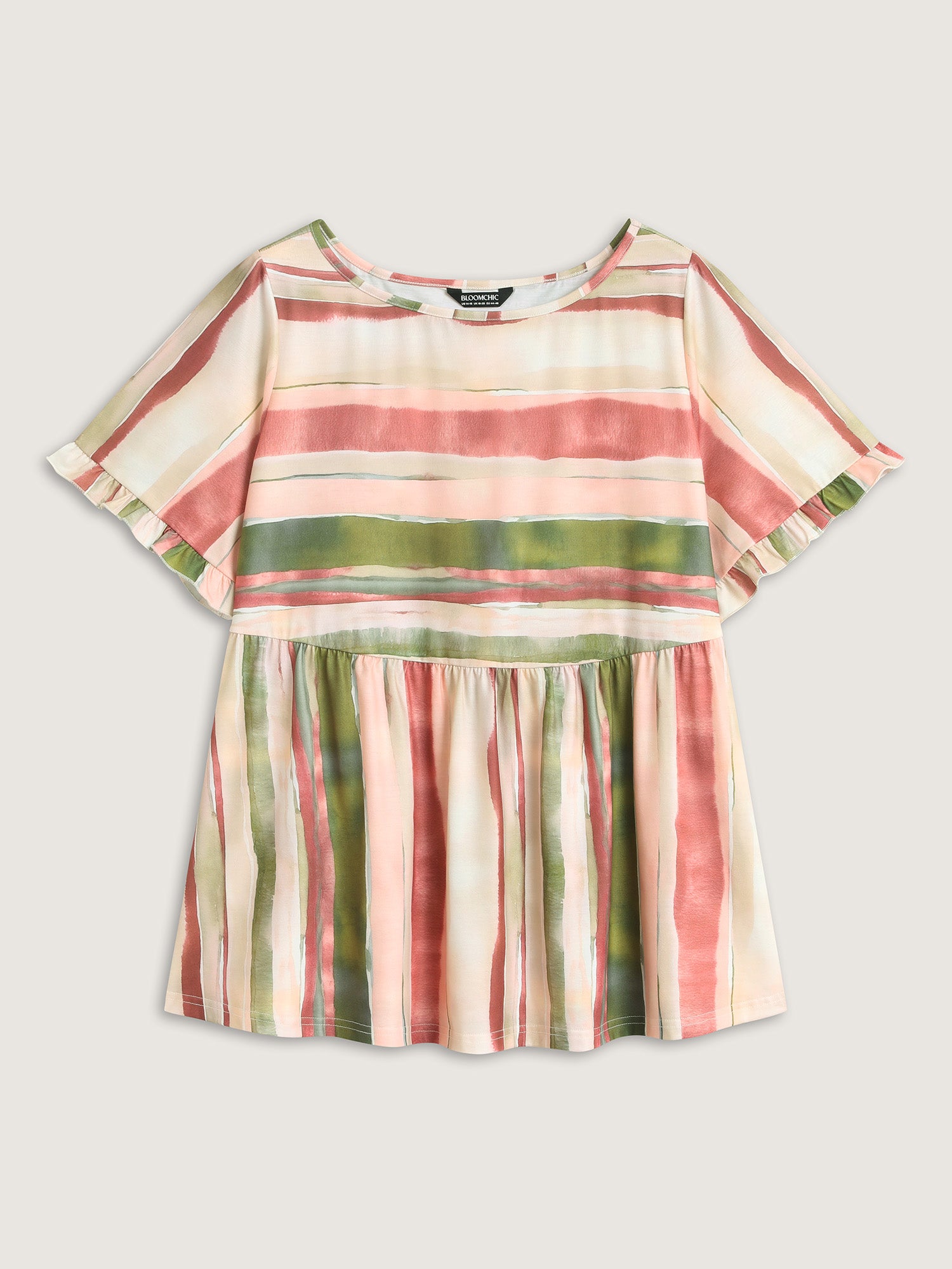 Shop Asymmetrical Stripes Ruffled Knit Top now and redefine your style with confidence at Sweetccc. Tailored for mid and plus-size women. This trendy Tops Women. sizes 10-30. Color:Multicolor;Prints:Stripes;Neckline:Boat Neck;Sleeve Type:Regular Sleeve;Details:Gathered. Contrast;Pocket:No-pocket