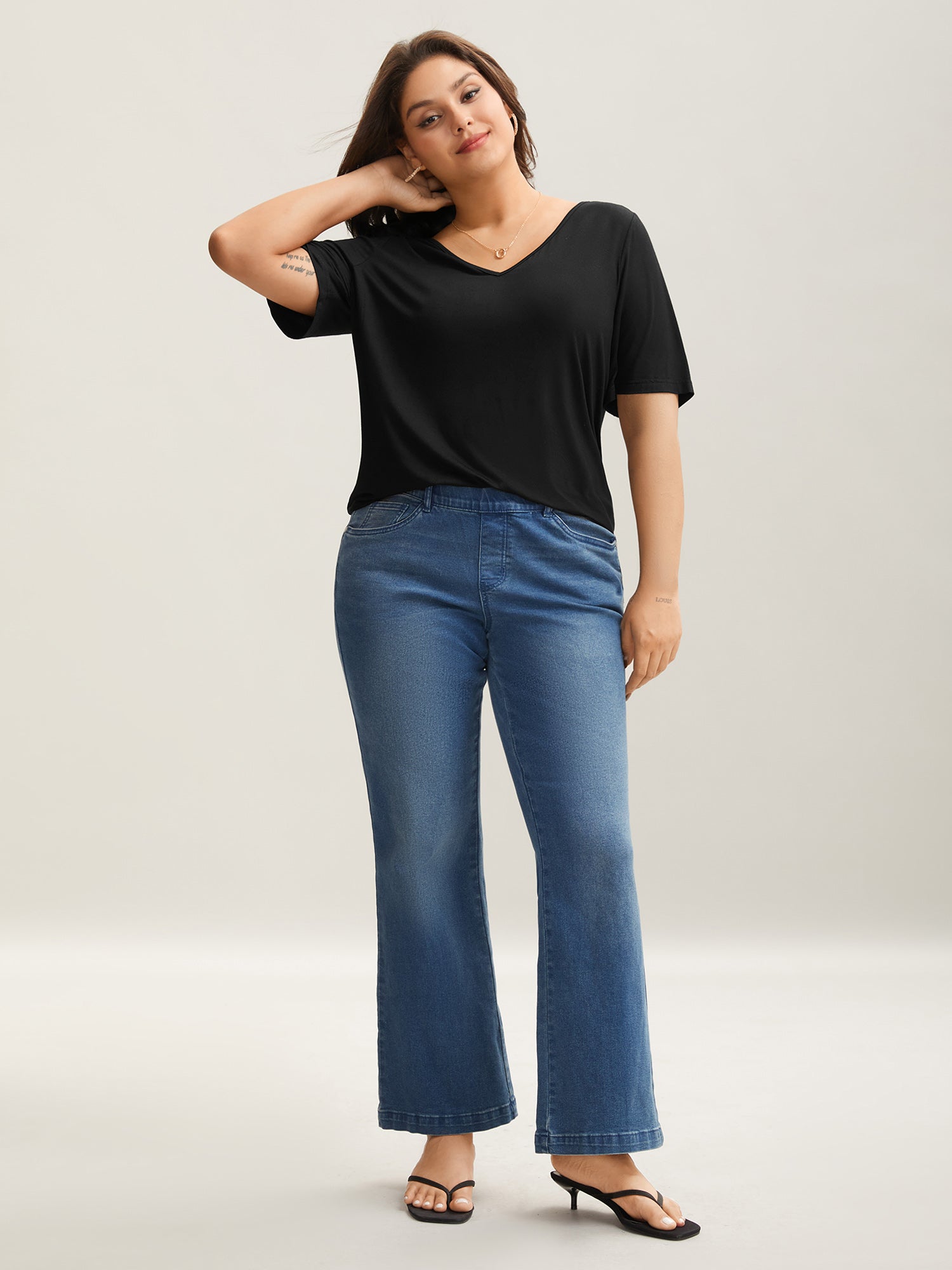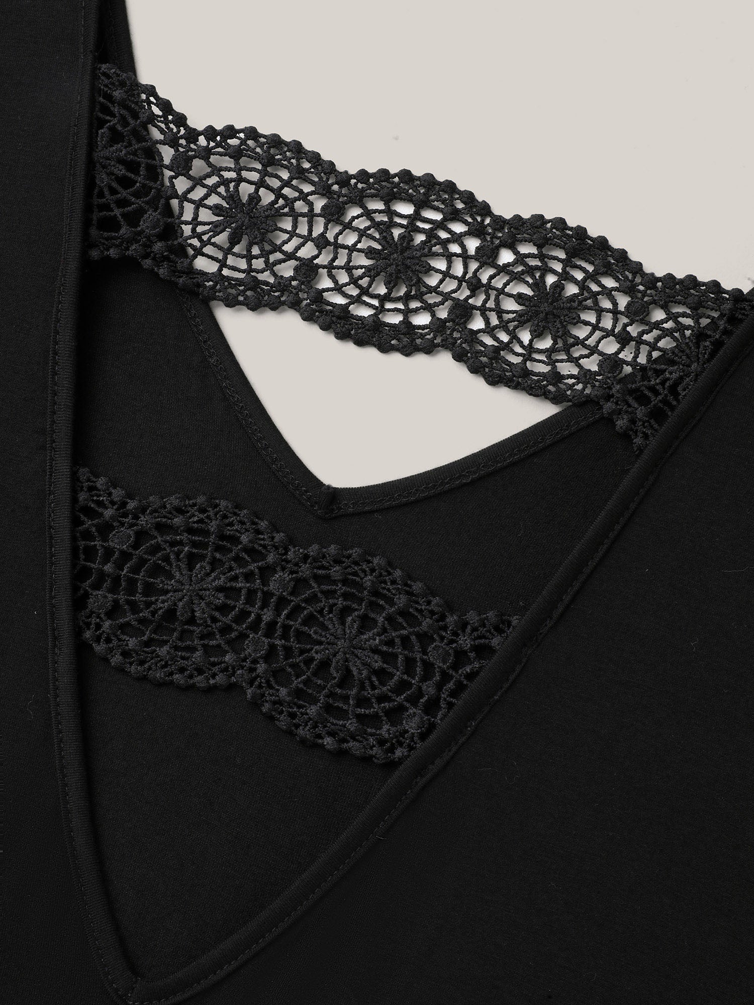 Shop Back Lace Cut-Out V-Neck T-Shirt now and redefine your style with confidence at Sweetccc. Tailored for mid and plus-size women. This trendy Tops Women. sizes 10-30. Color:Black;Style:Elegant;Prints:Non;Neckline:V-neck;Sleeve Type:Regular Sleeve;Details:Patchwork. Backless;Pocket:No-pocket