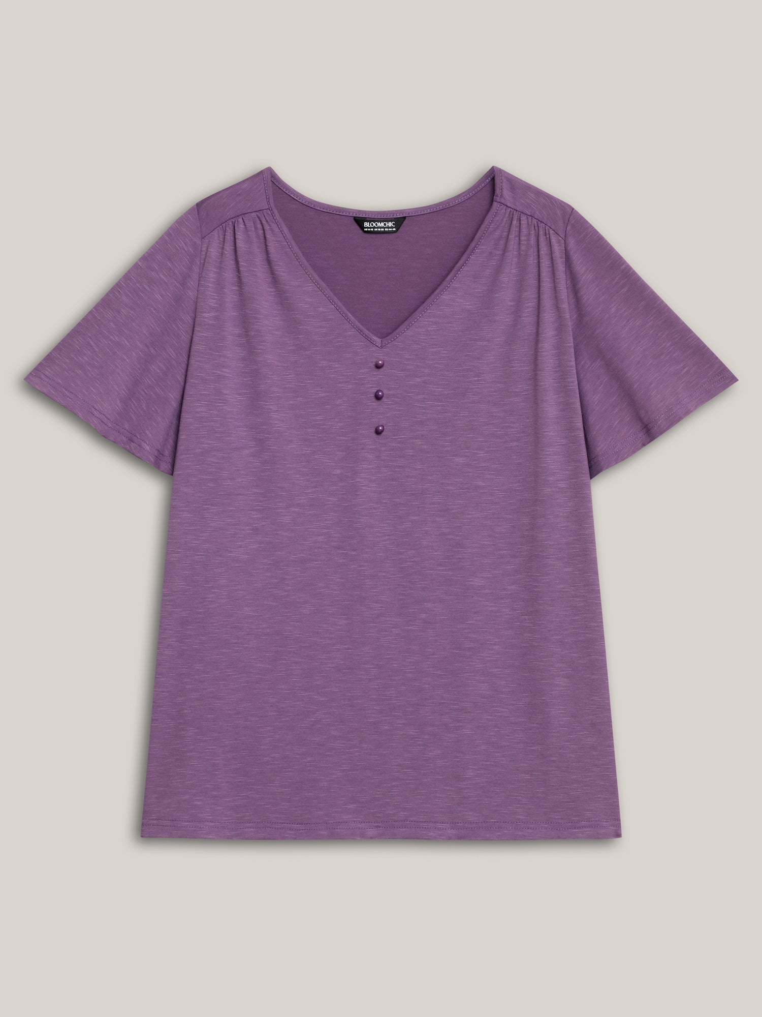 Shop Bamboo Textured Pleated Shoulder Button T-Shirt at Sweetccc. Plus Size Clothing & Plus Size T-shirts. Sweetccc is a digital-first fashion and lifestyle destination for modern women sizes 10-30.
