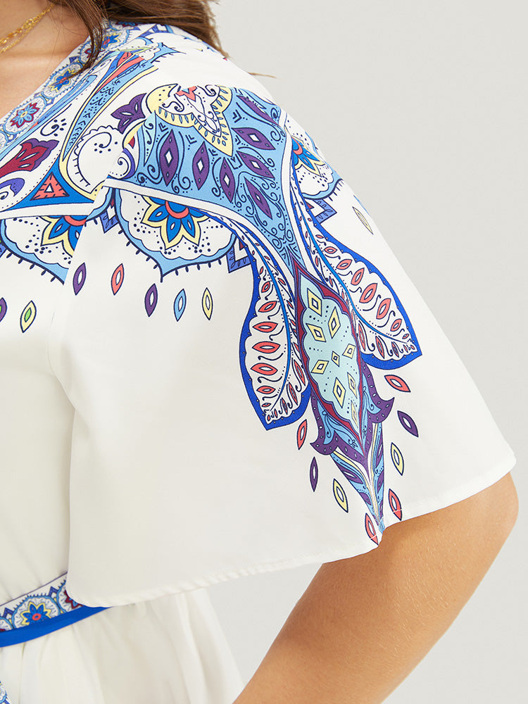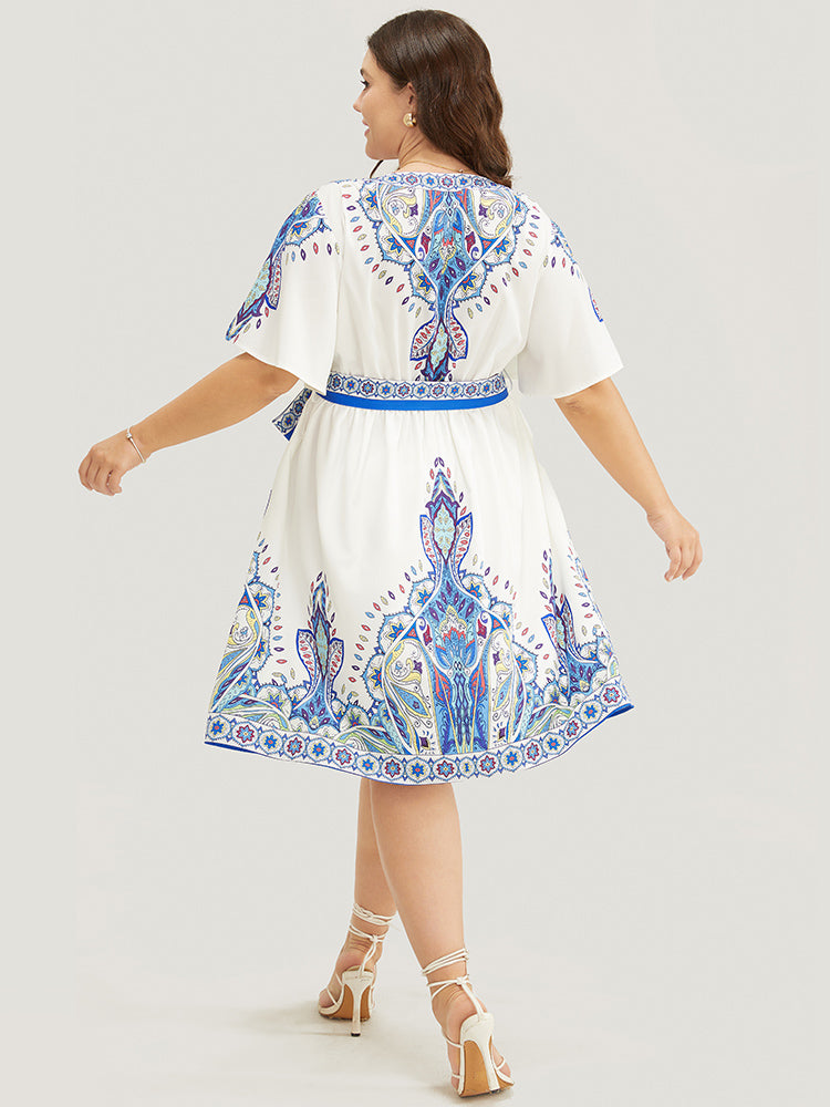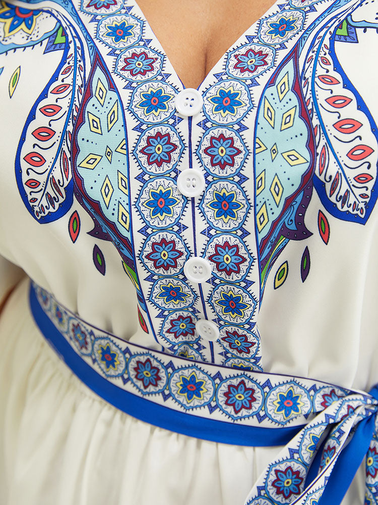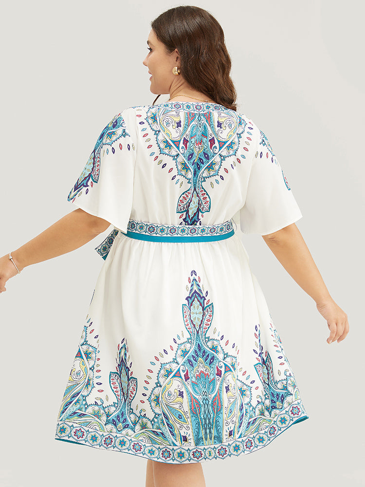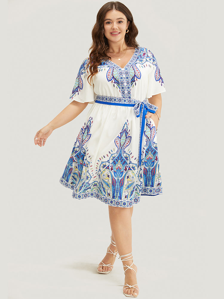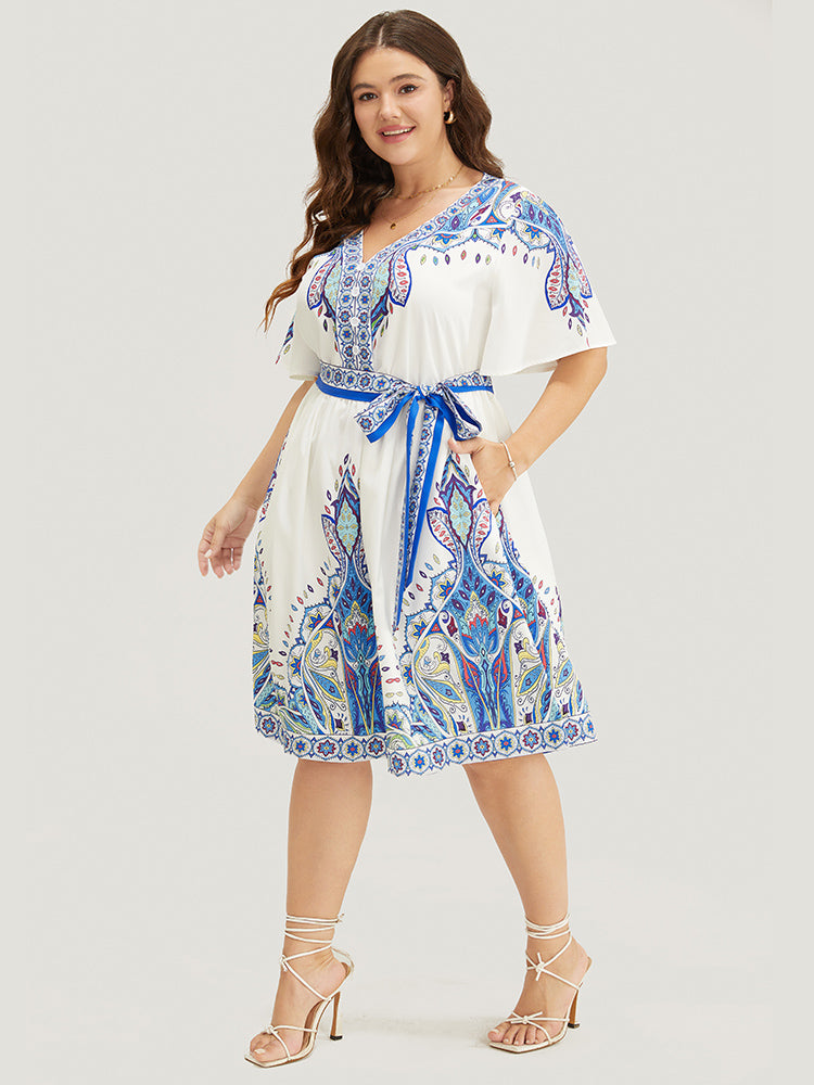 Shop Bandana Button Detail Pocket Belt Knee Dress now and redefine your style with confidence at Sweetccc. Tailored for mid and plus-size women. This trendy Dress. sizes 10-30. You can never go wrong with Sweetccc Dresses. Season:Summer;Color:Blue.Emerald;Style:Vacation;Neckline:V-neck;Sleeve Type:Ruffle Sleeve;Pattern Type:Bohemian Print;Details:Pocket. Elastic Waist. Lined;Pocket:It is perfectly sized to carry a phone.;Belt:Belt