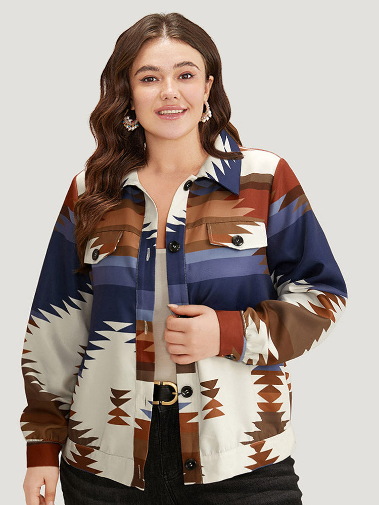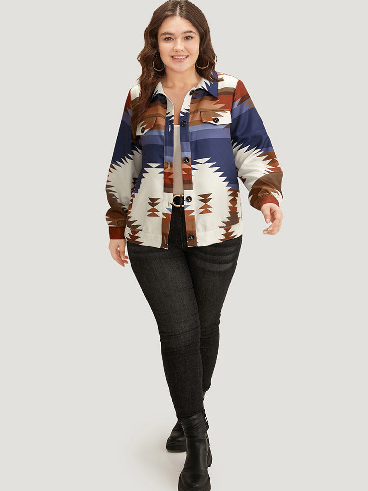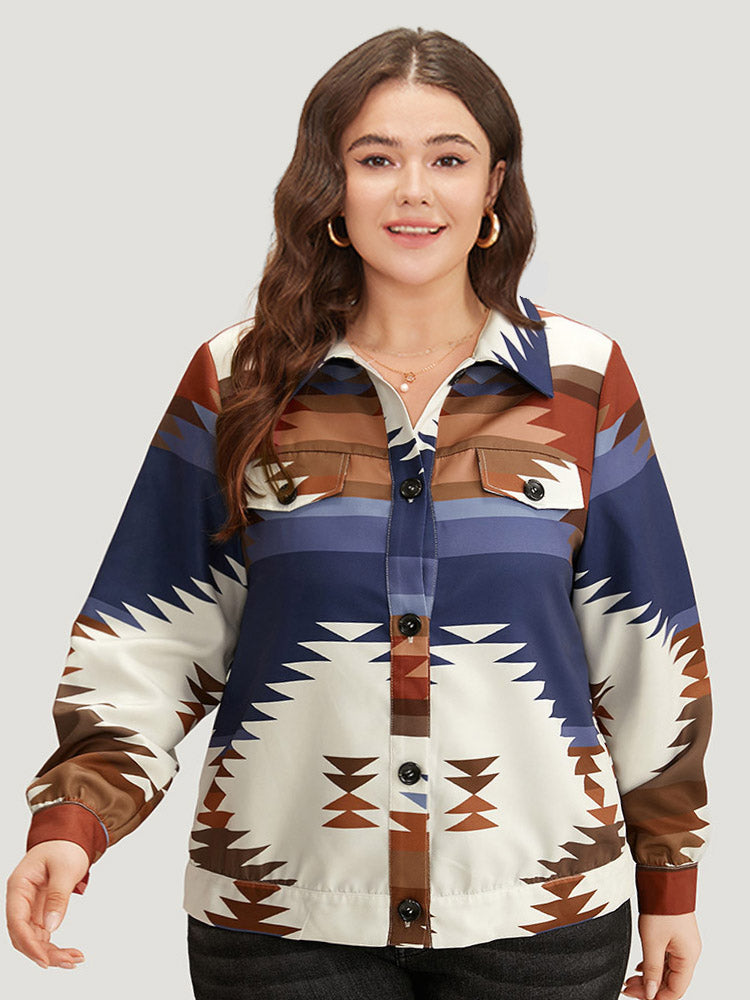 Shop Bandana Geometric Contrast Shirt Collar Shacket now and redefine your style with confidence at Sweetccc. Tailored for mid and plus-size women. This trendy Outerwear Women. sizes 10-30. Season:Winter;Color:DarkBlue;Style:Casual;Pattern Type:Geometric. Graphic. Bohemian Print;Details:Button. Contrast;Pocket:No-pocket;Belt:No-belt;Closure Type:Button;Lining:No-lining