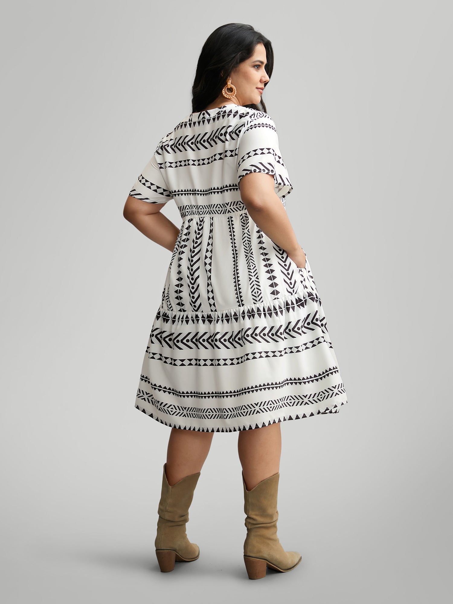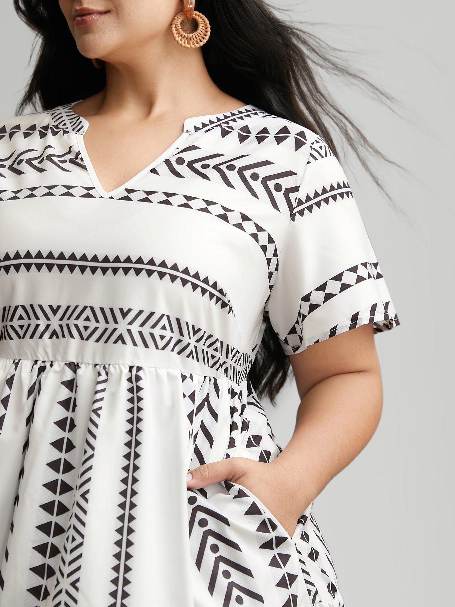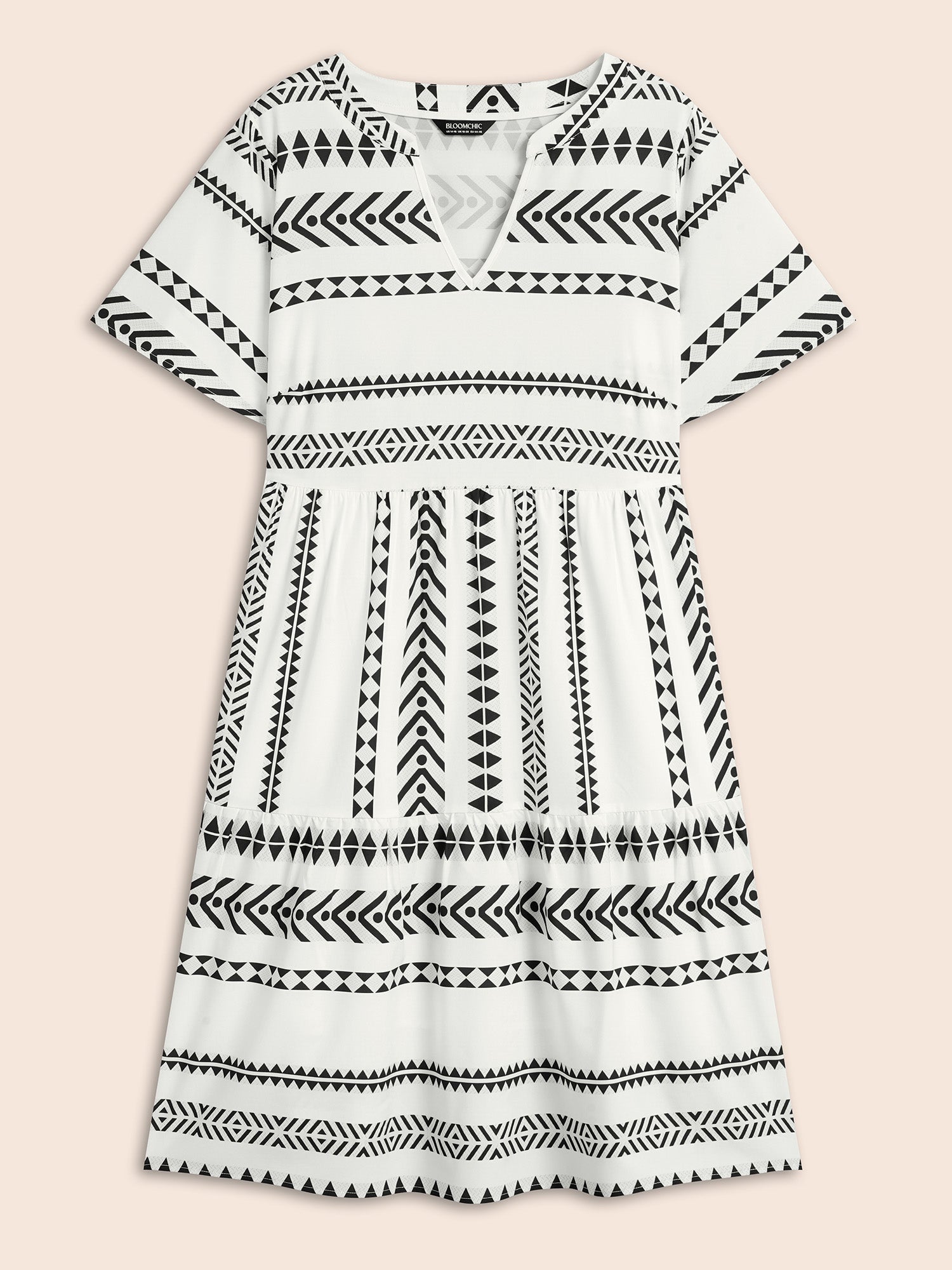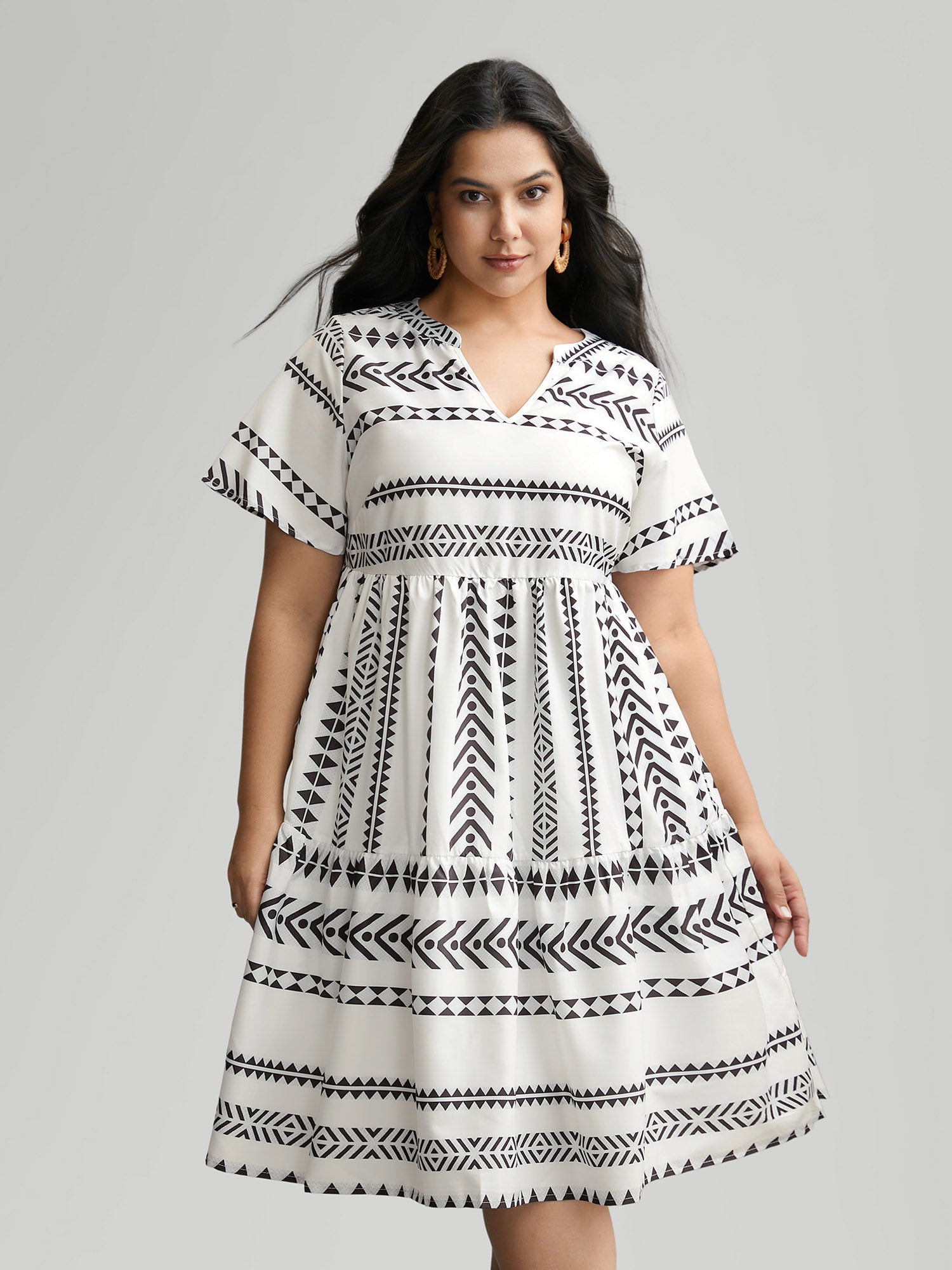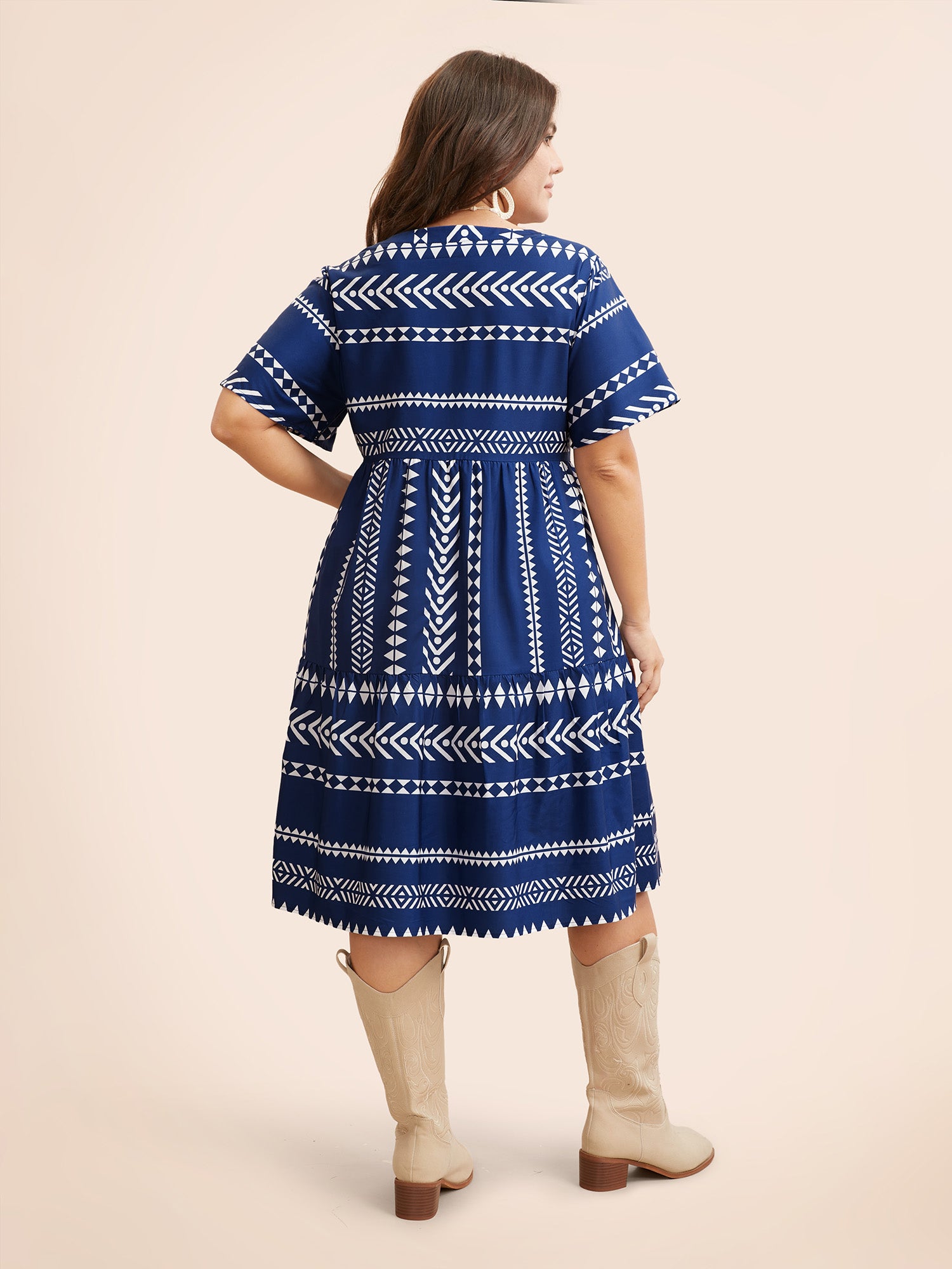 Shop Bandana Geometric Ruffle Sleeve Babydoll Dress now and redefine your style with confidence at Sweetccc. Tailored for mid and plus-size women. This trendy Dress. sizes 10-30. You can never go wrong with Sweetccc Dresses. Color:White.DarkBlue;Style:Vacation;Neckline:Notched collar;Sleeve Type:Ruffle Sleeve;Pattern Type:Geometric;Pocket:It is perfectly sized to carry a phone.;Belt:No-belt