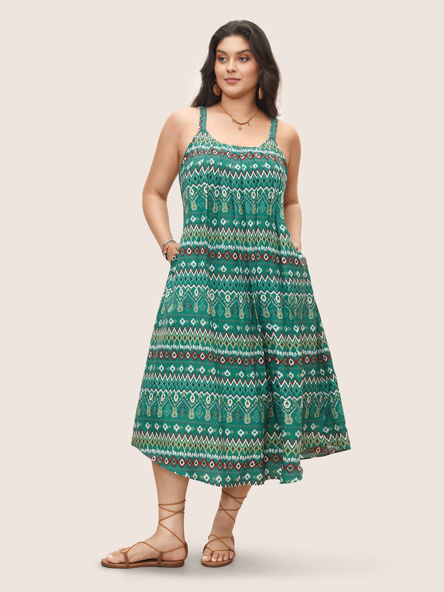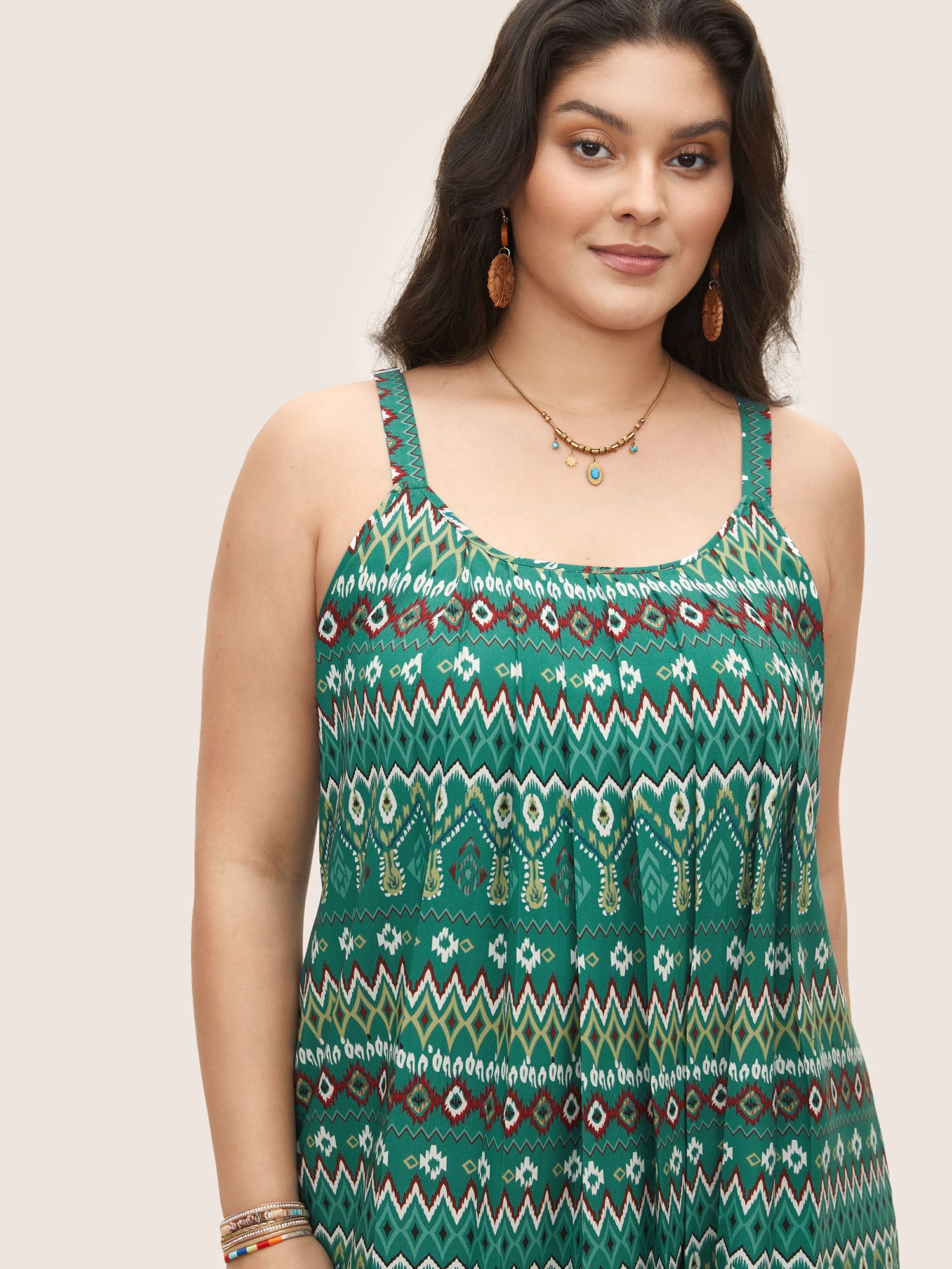 Shop Bandana Geometric Pleated Cami Dress now and redefine your style with confidence at Sweetccc. Tailored for mid and plus-size women. This trendy Dress. sizes 10-30. You can never go wrong with Sweetccc Dresses. Season:Summer;Color:Emerald;Neckline:Non;Sleeve Type:Sleeveless;Prints:Bohemian print;Details:Pleated;Pocket:Side seam pocket;Belt:No-belt