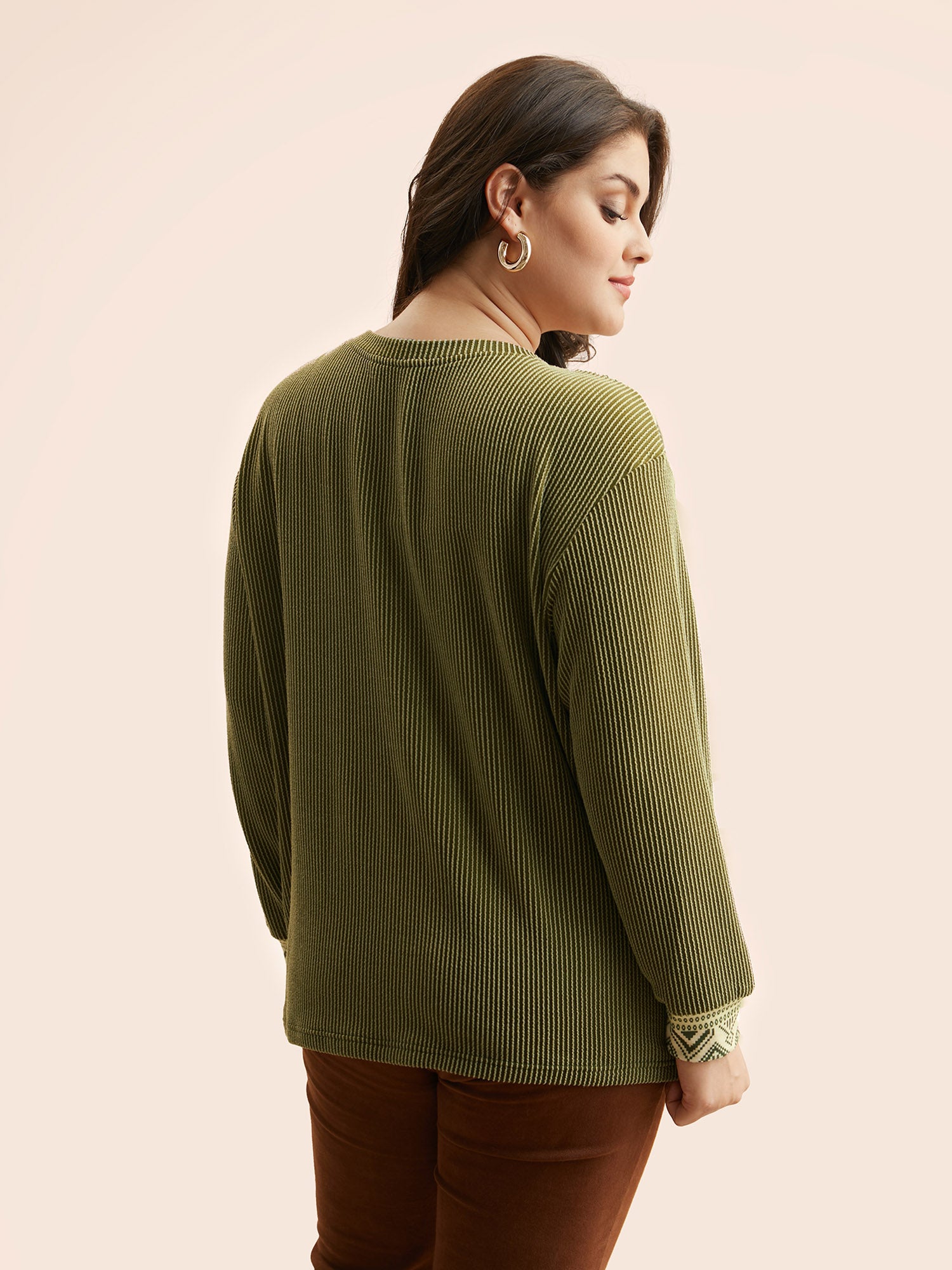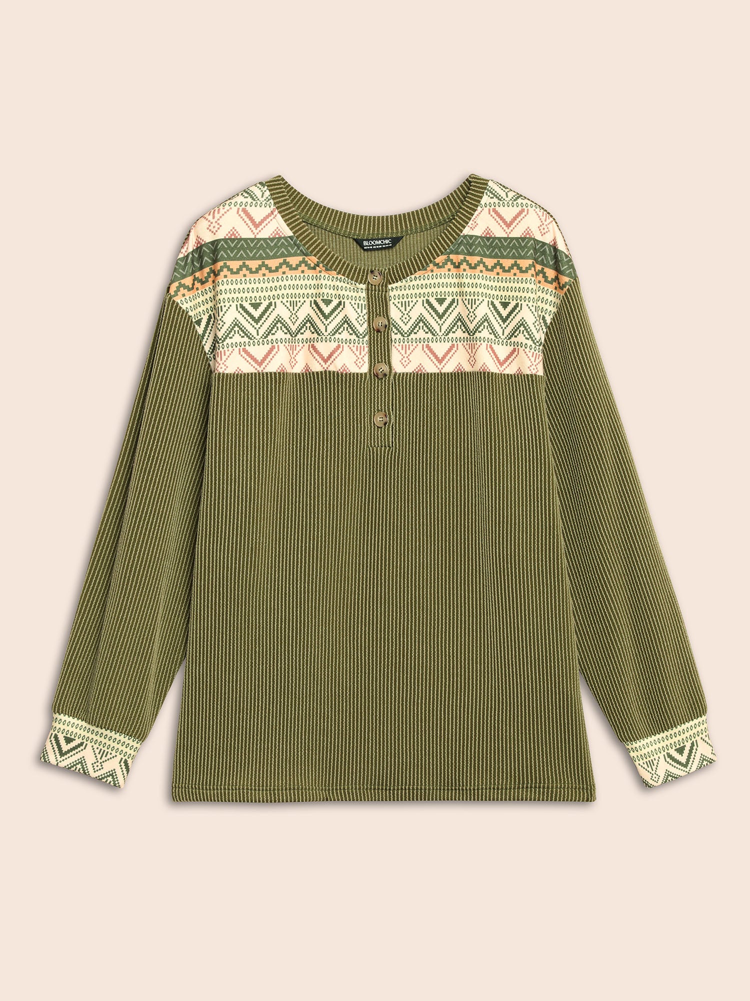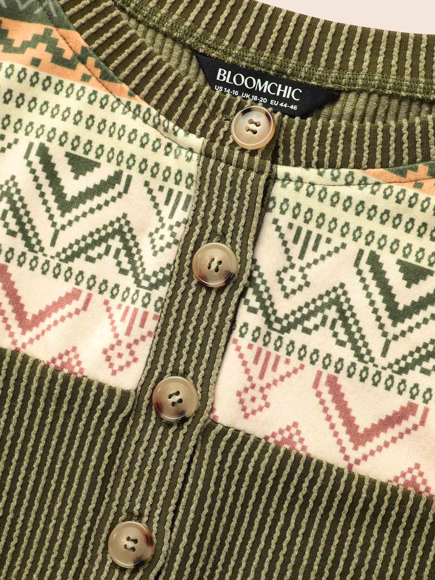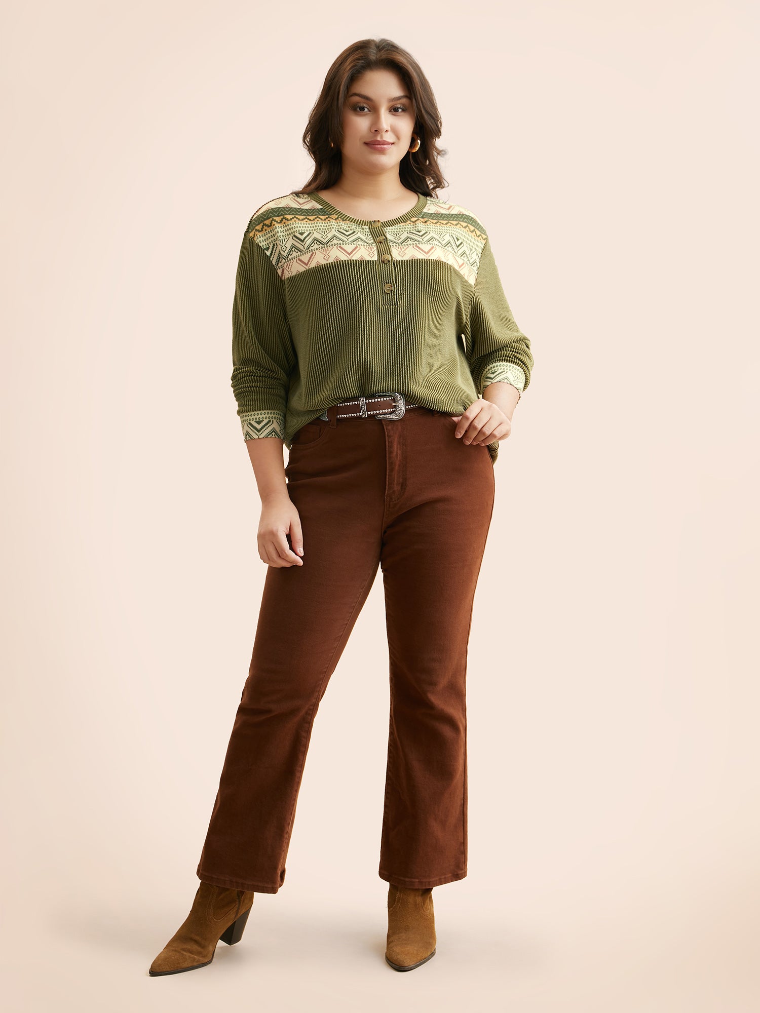 Shop Bandana Patchwork Button Up T-shirt now and redefine your style with confidence at Sweetccc. Tailored for mid and plus-size women. This trendy Tops Women. sizes 10-30. Season:Winter;Color:ArmyGreen;Style:Casual Everyday;Prints:Bohemian print;Neckline:Round Neck;Sleeve Type:Drop shoulder sleeve;Details:Patchwork. Button. Contrast. Texture;Pocket:No-pocket