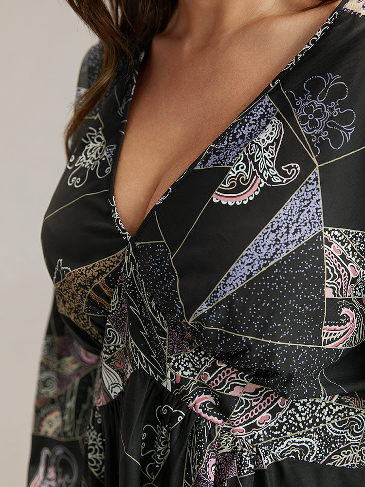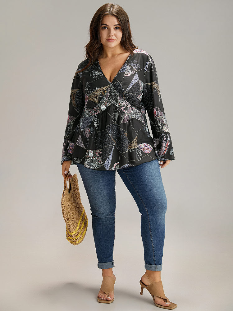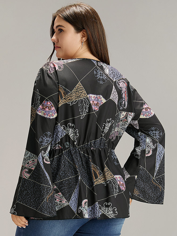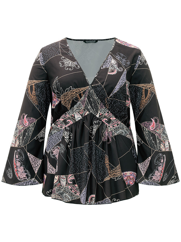 Shop Bandana Print Elastic Waist Blouse now and redefine your style with confidence at Sweetccc. Tailored for mid and plus-size women. This trendy Tops Women. sizes 10-30. Season:Winter;Color:BlackFlower;Style:Vacation;Pattern Type:Bohemian Print;Neckline:Deep V-neck;Sleeve Type:Bell Sleeve;Details:Elastic Waist. Ruffles;Pocket:No-pocket