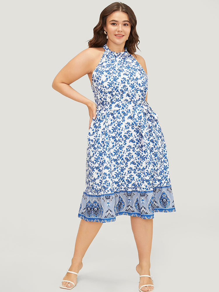 Shop Bandana Print Halter Ruffle Hem Pocket Belt Paisley Dress now and redefine your style with confidence at Sweetccc. Tailored for mid and plus-size women. This trendy Dress. sizes 10-30. You can never go wrong with Sweetccc Dresses. Season:Summer;Color:Indigo;Style:Vacation;Neckline:Halter neck;Sleeve Type:Sleeveless;Pattern Type:Paisley. Bohemian Print;Details:Ruffles. Pocket. Frill Trim. Belted;Pocket:It is perfectly sized to carry a phone.;Belt:Belt