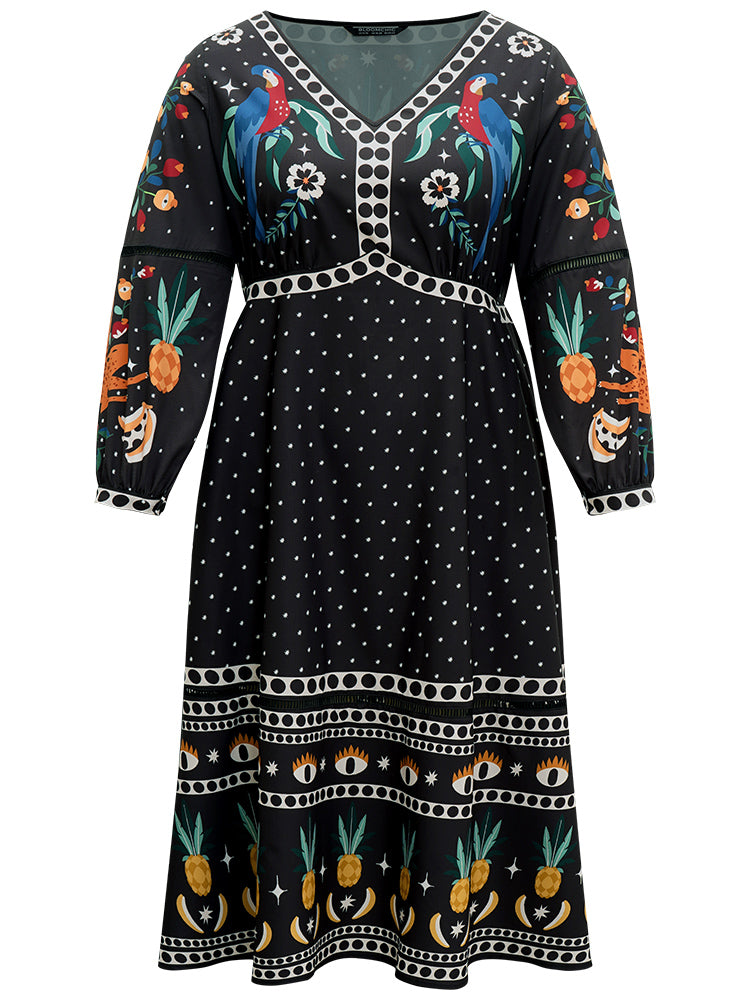 Shop Bandana Print Lantern Sleeve Ruffle Hem Dress now and redefine your style with confidence at Sweetccc. Tailored for mid and plus-size women. This trendy Dress. sizes 10-30. You can never go wrong with Sweetccc Dresses. Season:Winter;Color:Black;Neckline:V-neck;Sleeve Type:Lantern Sleeve;Pattern Type:Bohemian Print;Details:Pleated. Printed. Pocket;Pocket:It is perfectly sized to carry a phone.;Belt:No-belt