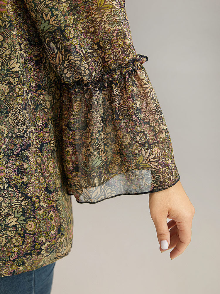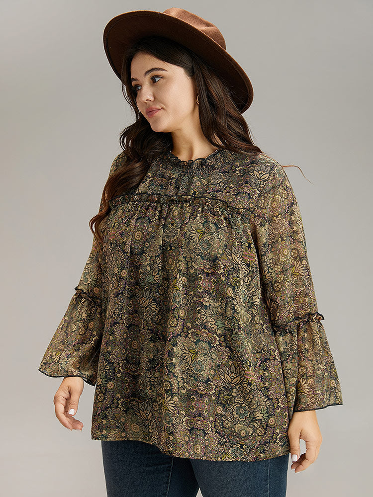 Shop Bandana Print Mesh Frill Trim Blouse now and redefine your style with confidence at Sweetccc. Tailored for mid and plus-size women. This trendy Tops Women. sizes 10-30. Season:Winter;Color:Bronze.Scarlet;Style:Elegant;Pattern Type:Bohemian Print;Neckline:Round Neck;Sleeve Type:Bell Sleeve;Details:Shirred. Frill Trim. See through. Lined;Pocket:No-pocket