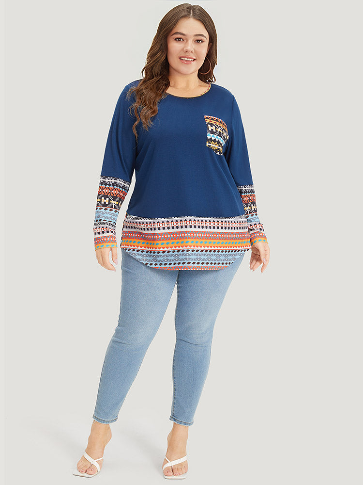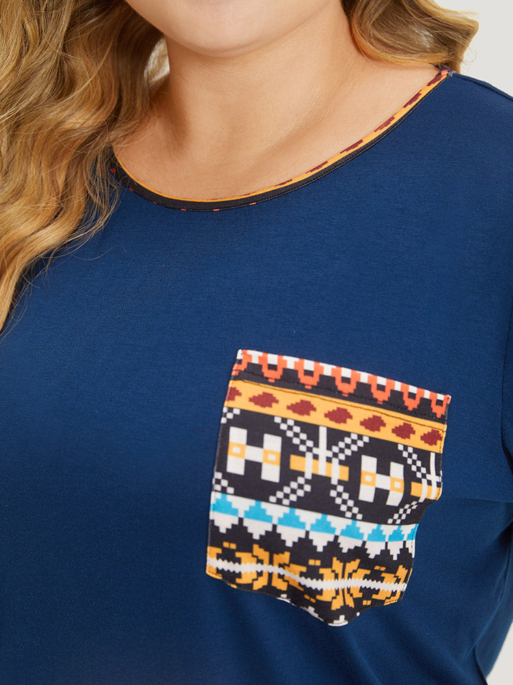 Shop Bandana Print Patched Pocket Curved Hem T-shirt now and redefine your style with confidence at Sweetccc. Tailored for mid and plus-size women. This trendy Tops Women. sizes 10-30. Season:Summer;Color:Blue;Style:Elegant;Pattern Type:Bohemian Print;Neckline:Round Neck;Sleeve Type:Regular Sleeve;Details:Pocket. Patchwork;Pocket:It is perfectly sized to carry a phone.