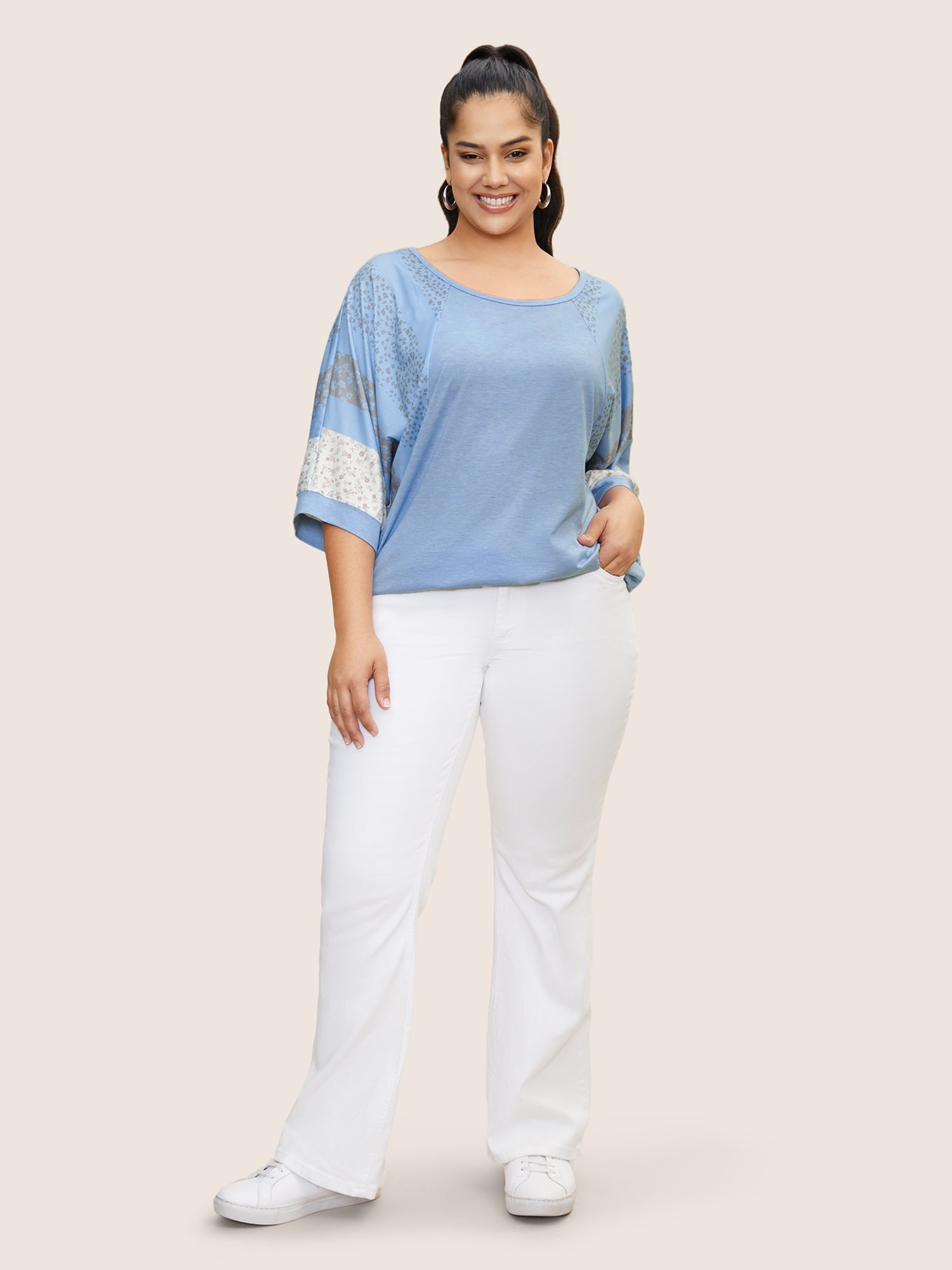 Shop Bandana Print Patchwork Raglan Sleeve T-shirt now and redefine your style with confidence at Sweetccc. Tailored for mid and plus-size women. This trendy Tops Women. sizes 10-30. Season:Summer;Color:LightBlue;Style:Casual;Pattern Type:Natural Flowers;Prints:Bohemian print;Neckline:Round Neck;Sleeve Type:Lantern Sleeve;Details:Patchwork. Contrast;Pocket:No-pocket