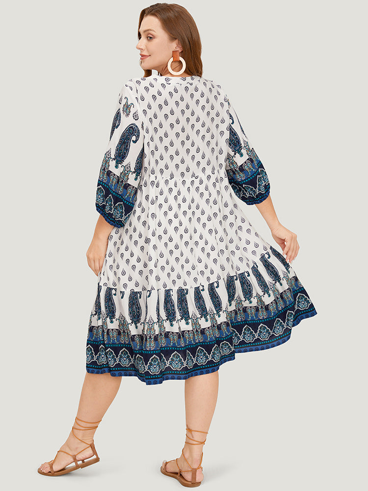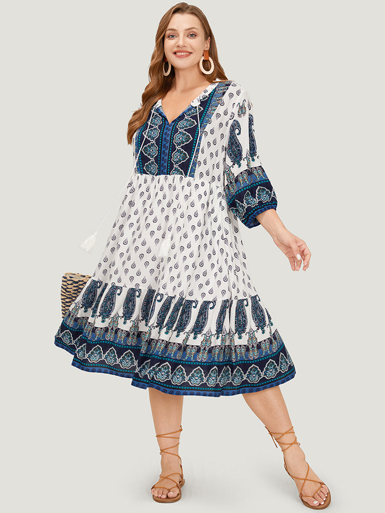 Shop Bandana Print Ruffles Lantern Sleeve Pocket Tassels Tie Neck Dress now and redefine your style with confidence at Sweetccc. Tailored for mid and plus-size women. This trendy Dress. sizes 10-30. You can never go wrong with Sweetccc Dresses. Color:White;Style:Vacation;Neckline:Tie Neck;Sleeve Type:Lantern Sleeve;Pattern Type:Bohemian Print;Details:Ruffles. Tassels;Pocket:It is perfectly sized to carry a phone.;Belt:No-belt