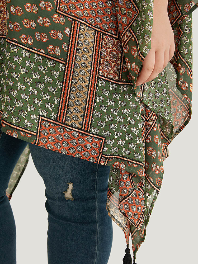 Shop Bandana Print Tassels Trim Asymmetrical Hem Kimono now and redefine your style with confidence at Sweetccc. Tailored for mid and plus-size women. This trendy Outerwear Women. sizes 10-30. Season:Fall;Color:Moss;Style:Casual;Pattern Type:Bohemian Print;Details:Printed. Tassels. Drape. Asymmetrical;Pocket:No-pocket;Belt:No-belt