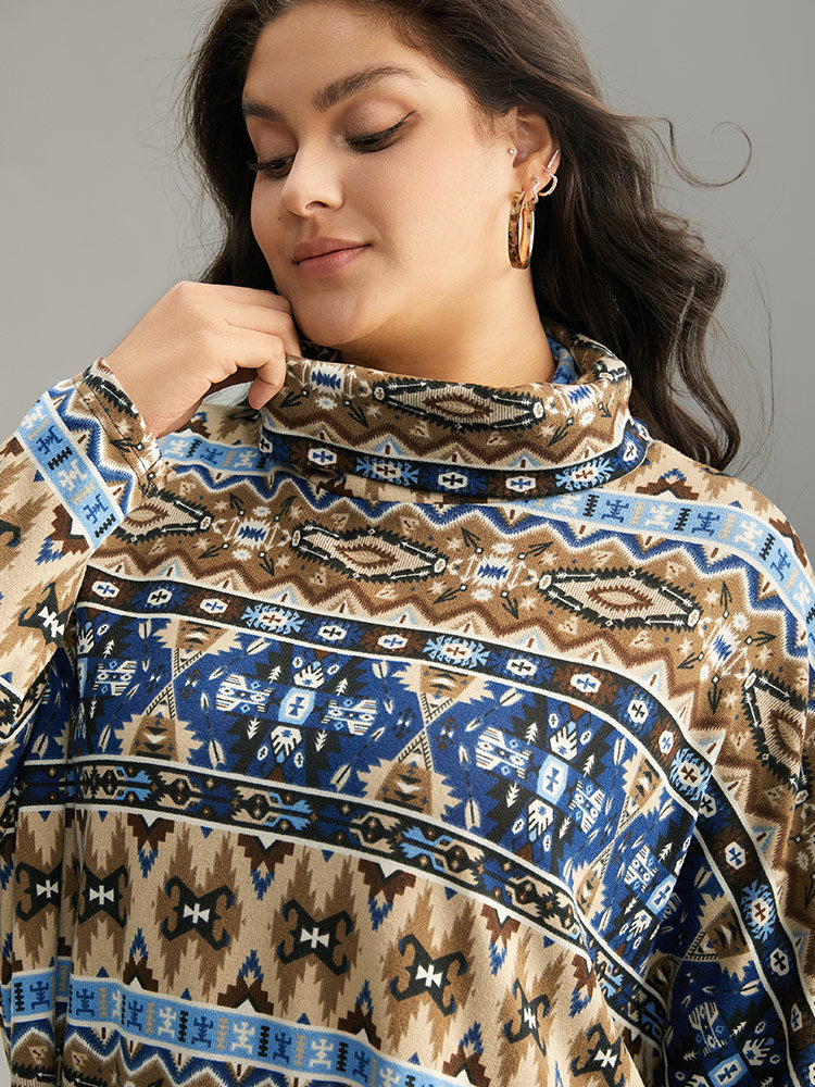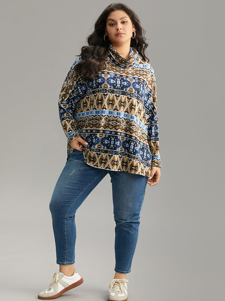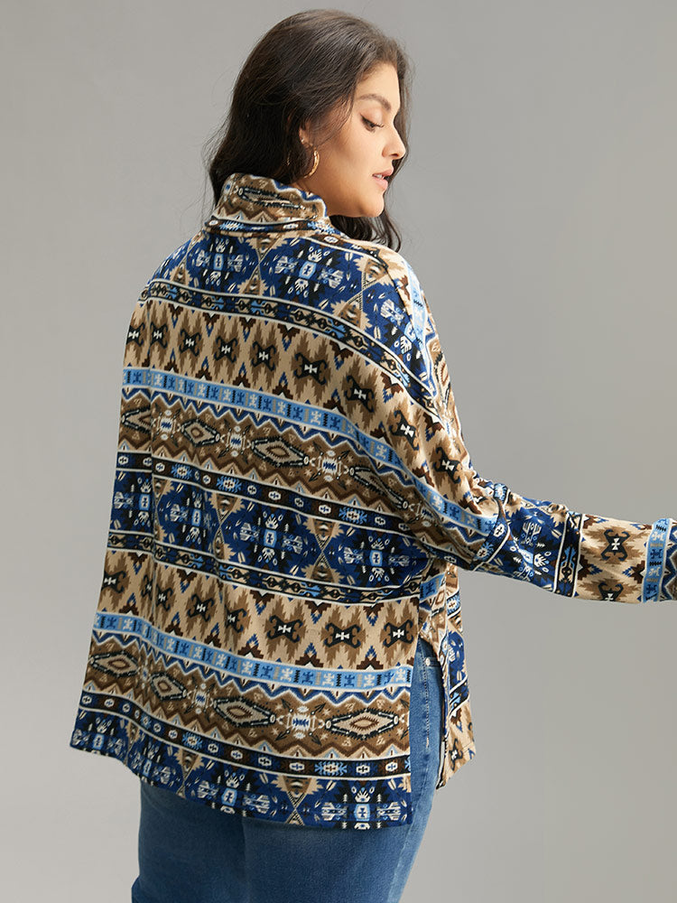 Shop Bandana Print Turtleneck Split Hem T-shirt now and redefine your style with confidence at Sweetccc. Tailored for mid and plus-size women. This trendy Tops Women. sizes 10-30. Season:Winter;Color:Indigo;Style:Casual;Pattern Type:Bohemian Print;Neckline:Turtleneck;Sleeve Type:Regular Sleeve;Details:Slit. Printed;Pocket:No-pocket