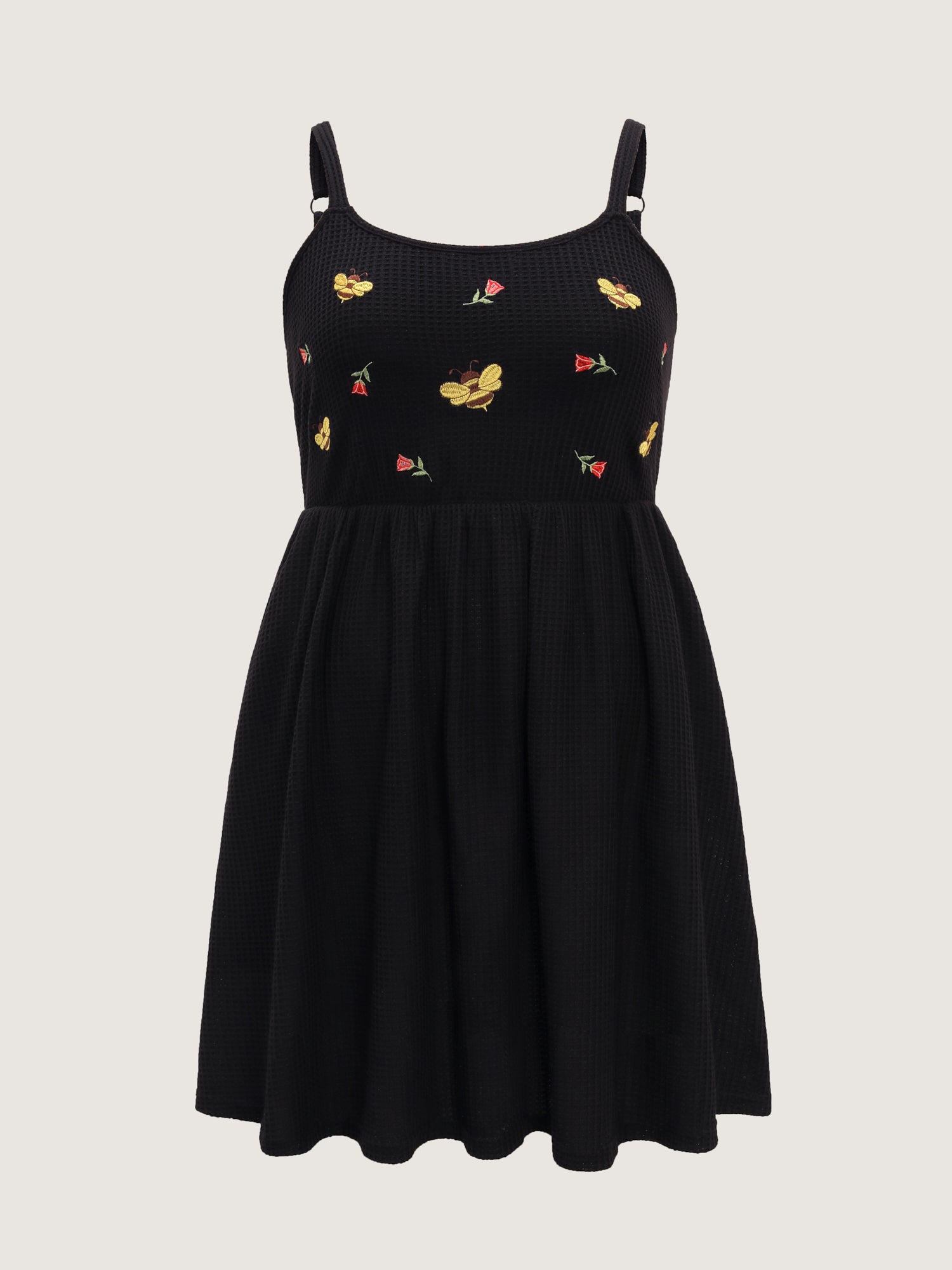 Shop Bee Embroidery Textured Cami Lounge Dress now and redefine your style with confidence at Sweetccc. Tailored for mid and plus-size women. This trendy Loungewear Women. sizes 10-30. Color:Black;Style:Playful;Neckline:Square Neck;Sleeve Type:Sleeveless;Pattern Type:Animals;Prints:Non;Details:Embroidered;Pocket:Side seam pocket;Belt:No-belt;Closure Type:Non