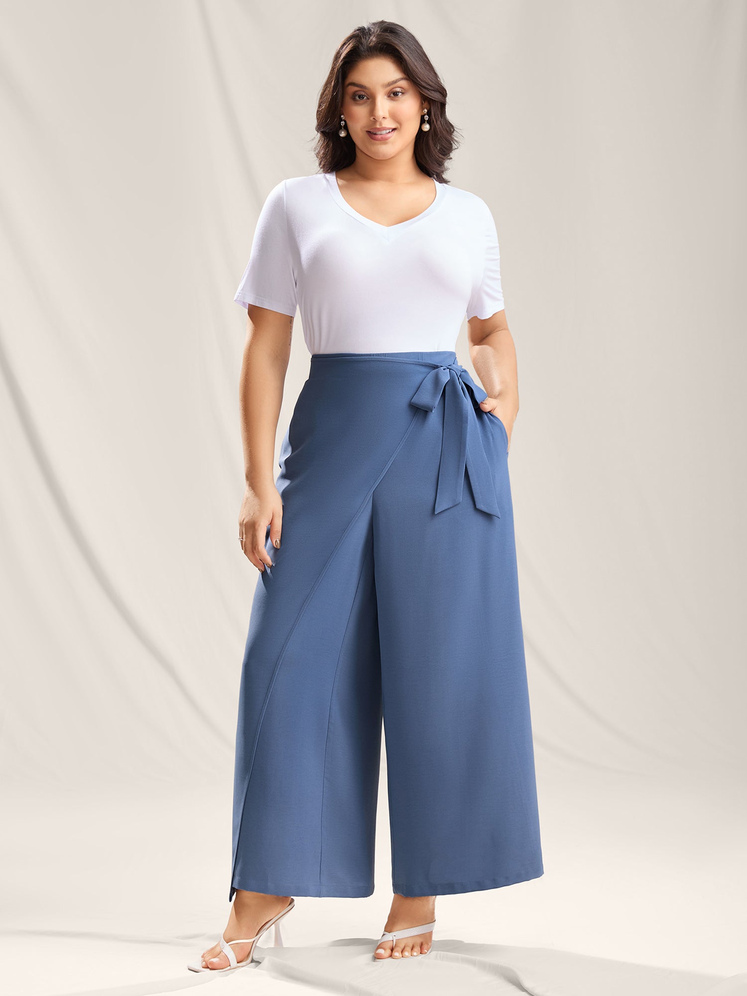 Shop Belted Wrap Detail Wide-Leg Pants now and redefine your style with confidence at Sweetccc. Tailored for mid and plus-size women. This trendy Bottoms Women. sizes 10-30. Color:Stone;Style:Elegant Everyday-Elegant;Waist Design:Mid Rise;Prints:Non;Details:Tie knot. Asymmetrical;Pocket:Slanted pocket;Belt:Belt;Closure Type:Non
