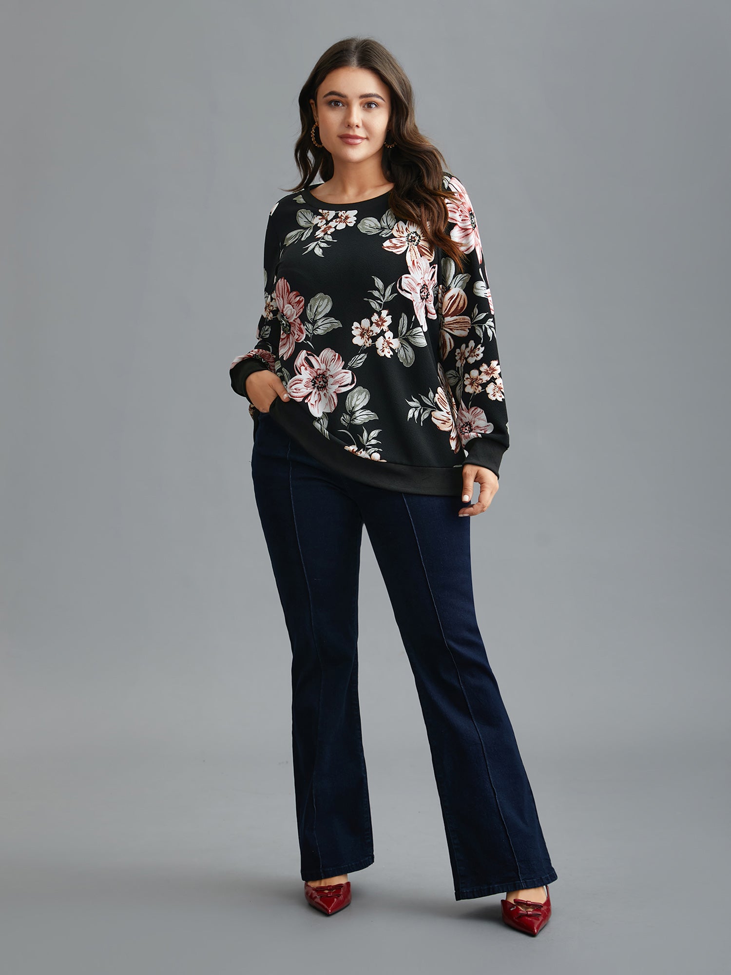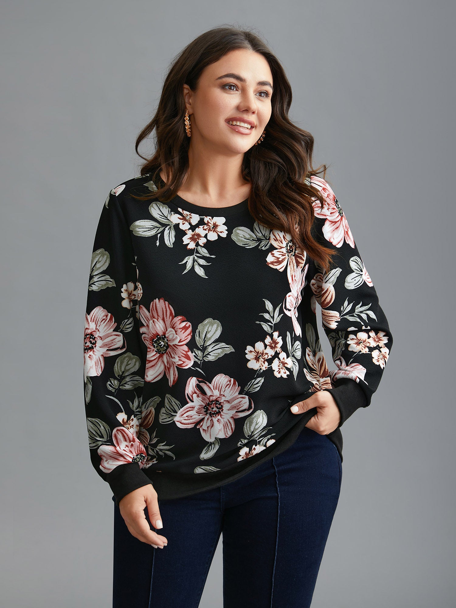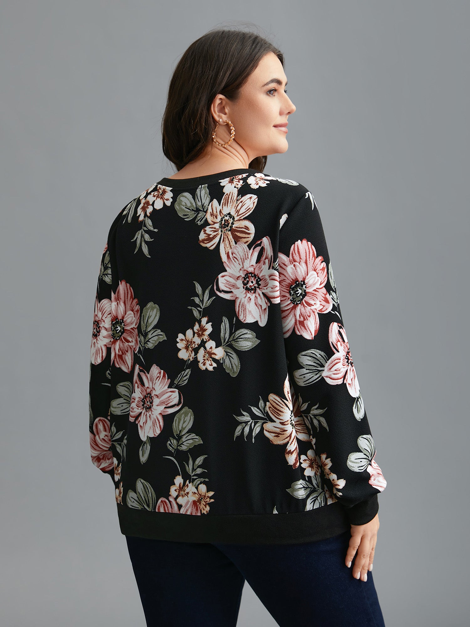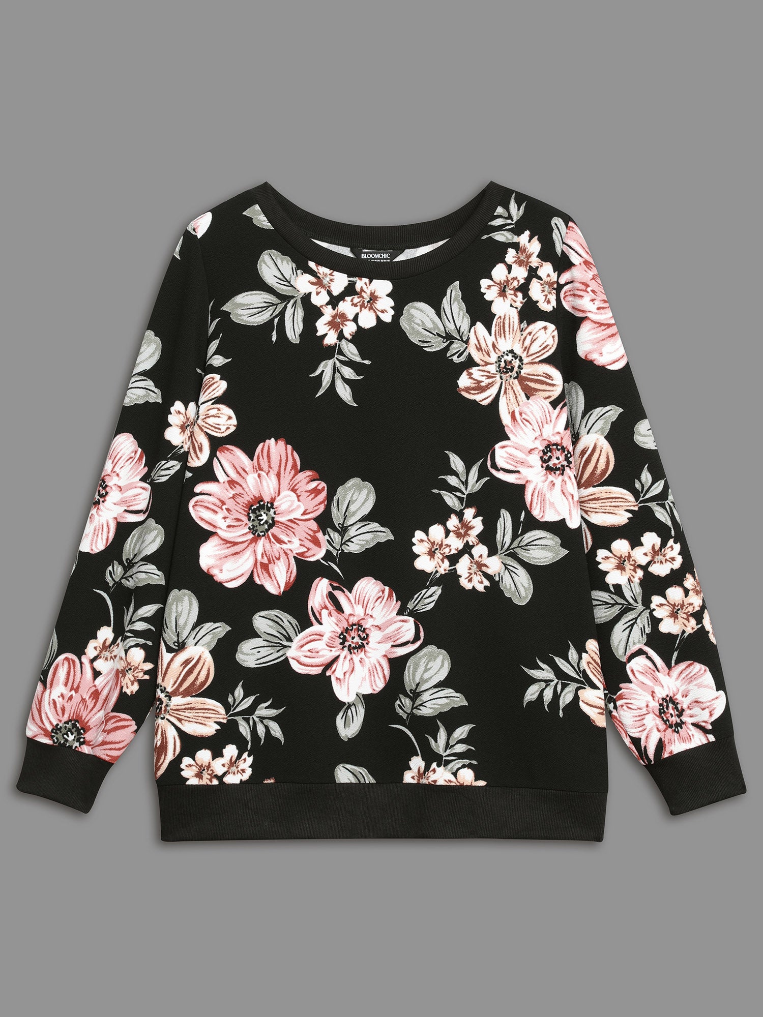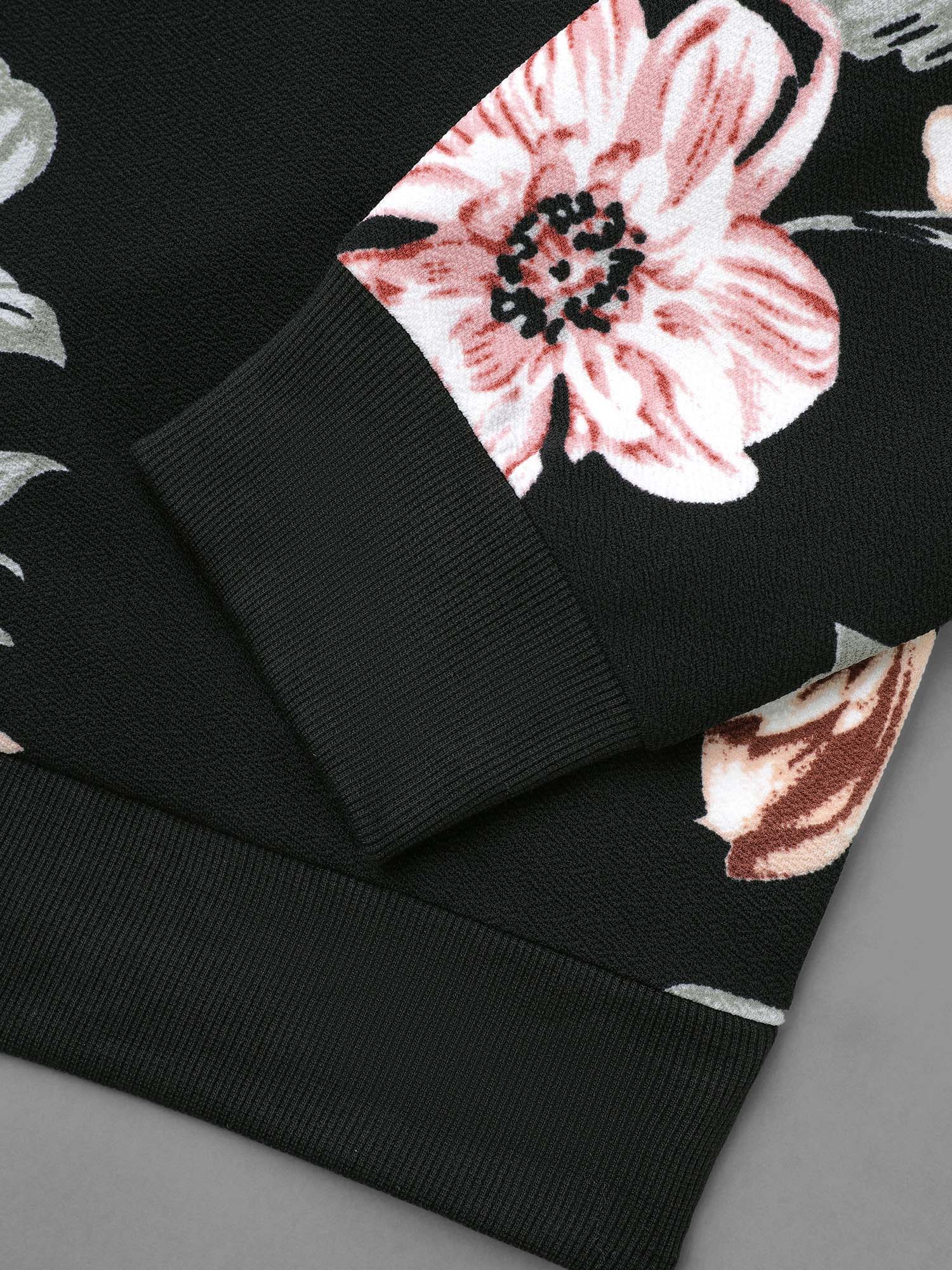Shop Big Flowers Crew Neck Elastic Sweatshirt now and redefine your style with confidence at Sweetccc. Tailored for mid and plus-size women. This trendy Tops Women. sizes 10-30. Season:Winter;Color:Black;Style:Elegant;Neckline:Round Neck;Sleeve Type:Regular Sleeve;Pattern Type:Natural Flowers;Prints:Floral;Details:Contrast;Pocket:No-pocket;Belt:No-belt;Closure Type:Non