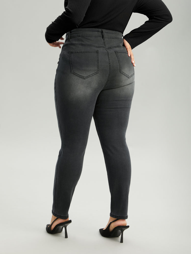 Shop Black Wash Button Detail Skinny Jeans now and redefine your style with confidence at Sweetccc. Tailored for mid and plus-size women. This trendy Denim Women. sizes 10-30. Season:Winter;Color:DimGray;Pattern Type:Plain;Details:Pocket. Button. Zipper. Plain;Pocket:It is perfectly sized to carry a phone.;Belt:No-belt;Closure Type:Zipper;Wash:Black Wash