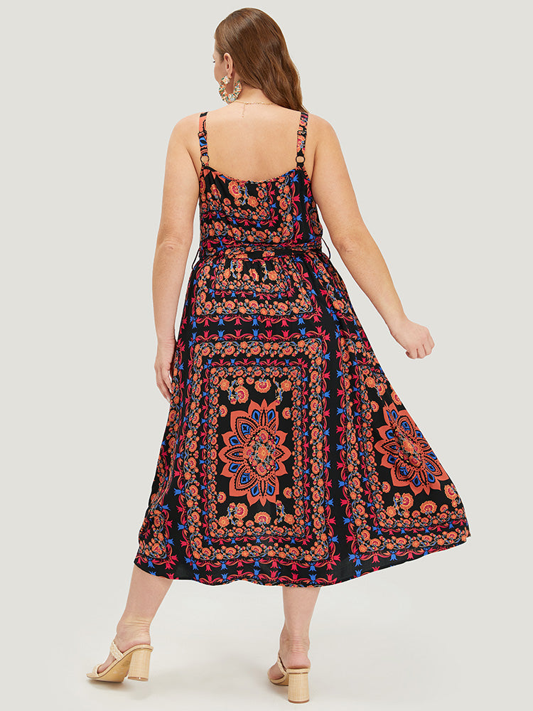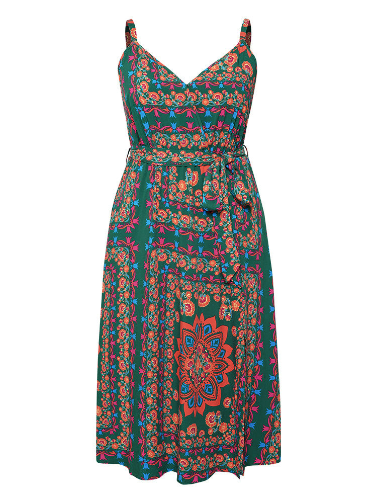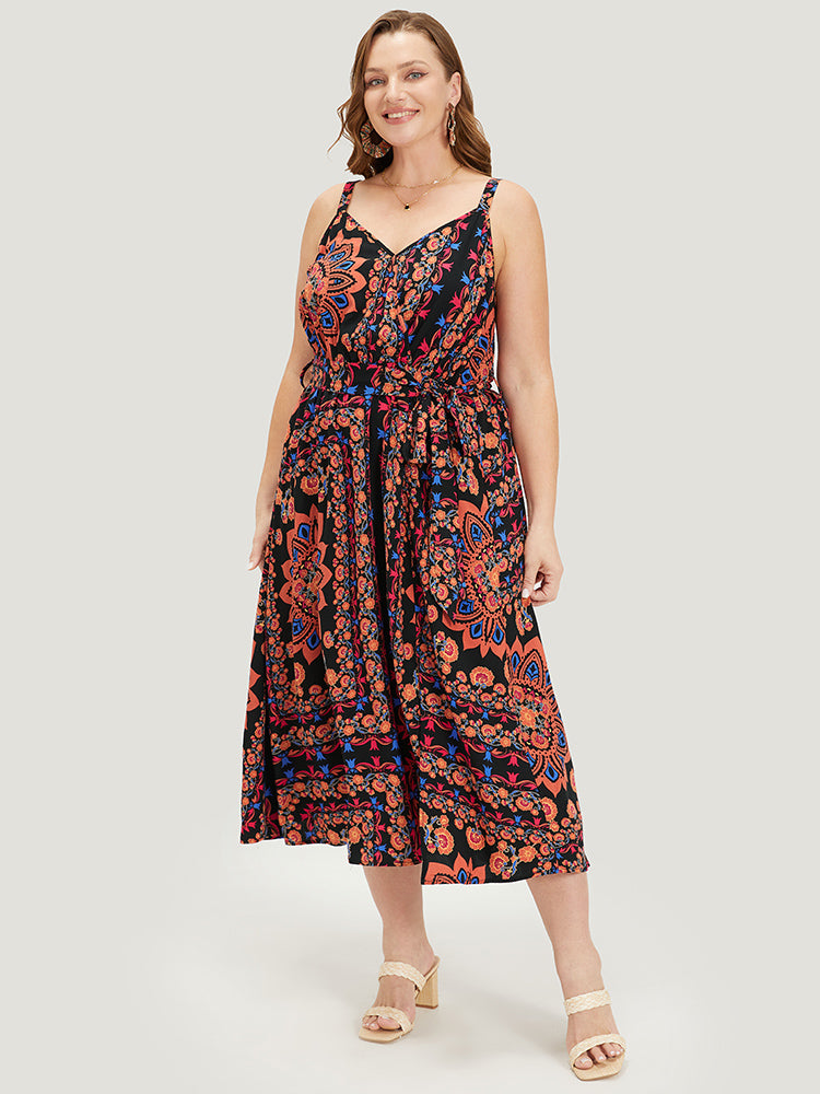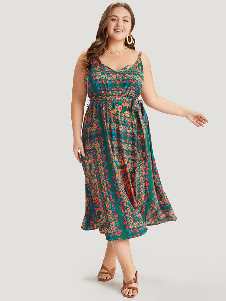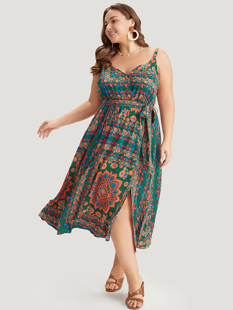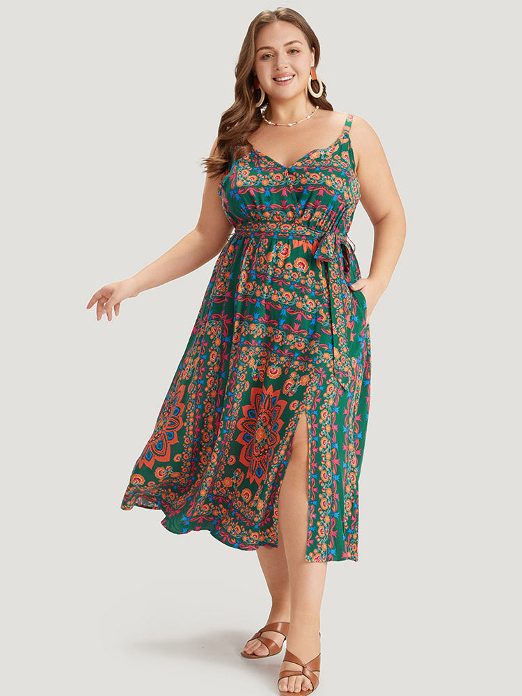 Shop Boho Print Belted Split Hem Pocket Cami Dress now and redefine your style with confidence at Sweetccc. Tailored for mid and plus-size women. This trendy Dress. sizes 10-30. You can never go wrong with Sweetccc Dresses. Color:DarkGreen.Black;Style:Vacation;Neckline:V-neck;Sleeve Type:Sleeveless;Pattern Type:Geometric;Details:Slit. Pocket. Elastic Waist. Patchwork. Belted. Gathered;Pocket:It is perfectly sized to carry a phone.;Belt:Belt;Closure Type:Elastic Waist