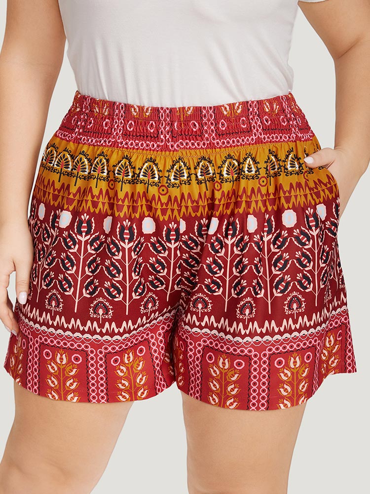 Shop Boho Print Pocket Elastic Waist Shorts now and redefine your style with confidence at Sweetccc. Tailored for mid and plus-size women. This trendy Bottoms Women. sizes 10-30. Season:Summer;Color:Multicolor;Style:Vacation;Waist Design:High Rise;Pattern Type:Bohemian Print;Details:Shirred;Pocket:It is perfectly sized to carry a phone.;Belt:No-belt;Closure Type:Elastic Waist